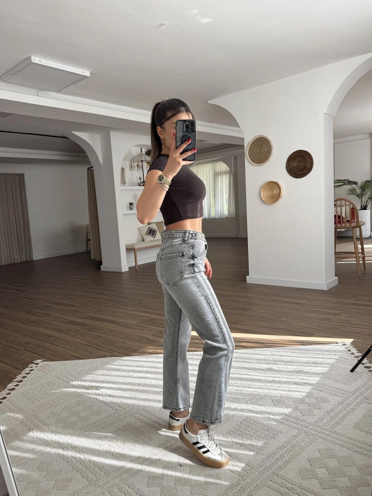 COS BEL GOLD AKSESUAR DETAY YÜKSEK BEL JEAN – GRİ
