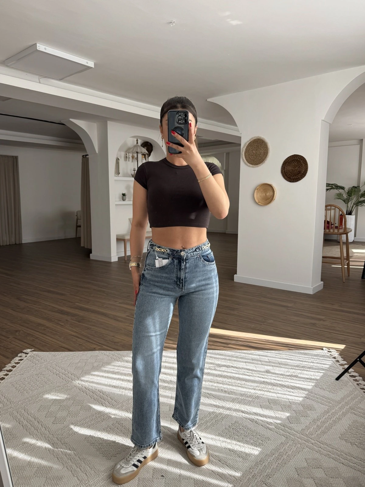 COS BEL GOLD AKSESUAR DETAY YÜKSEK BEL JEAN – MAVİ