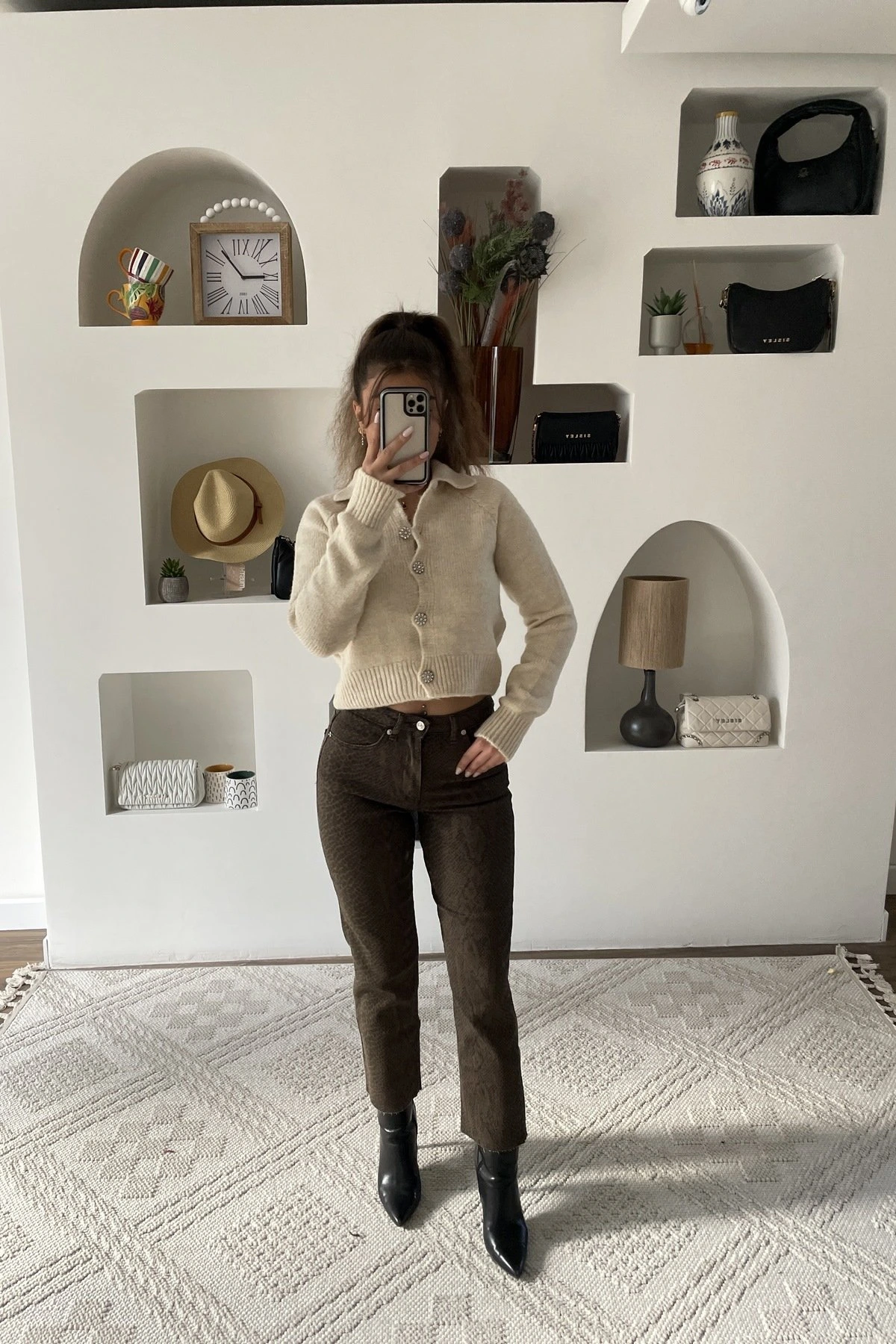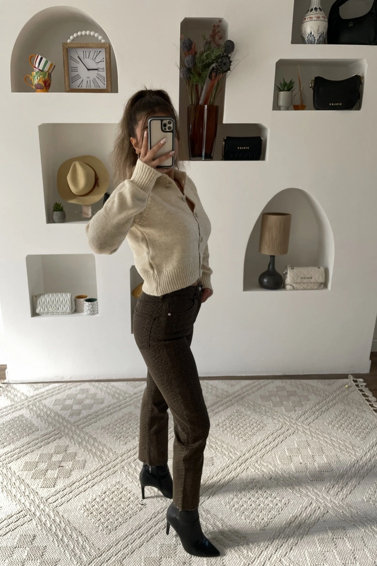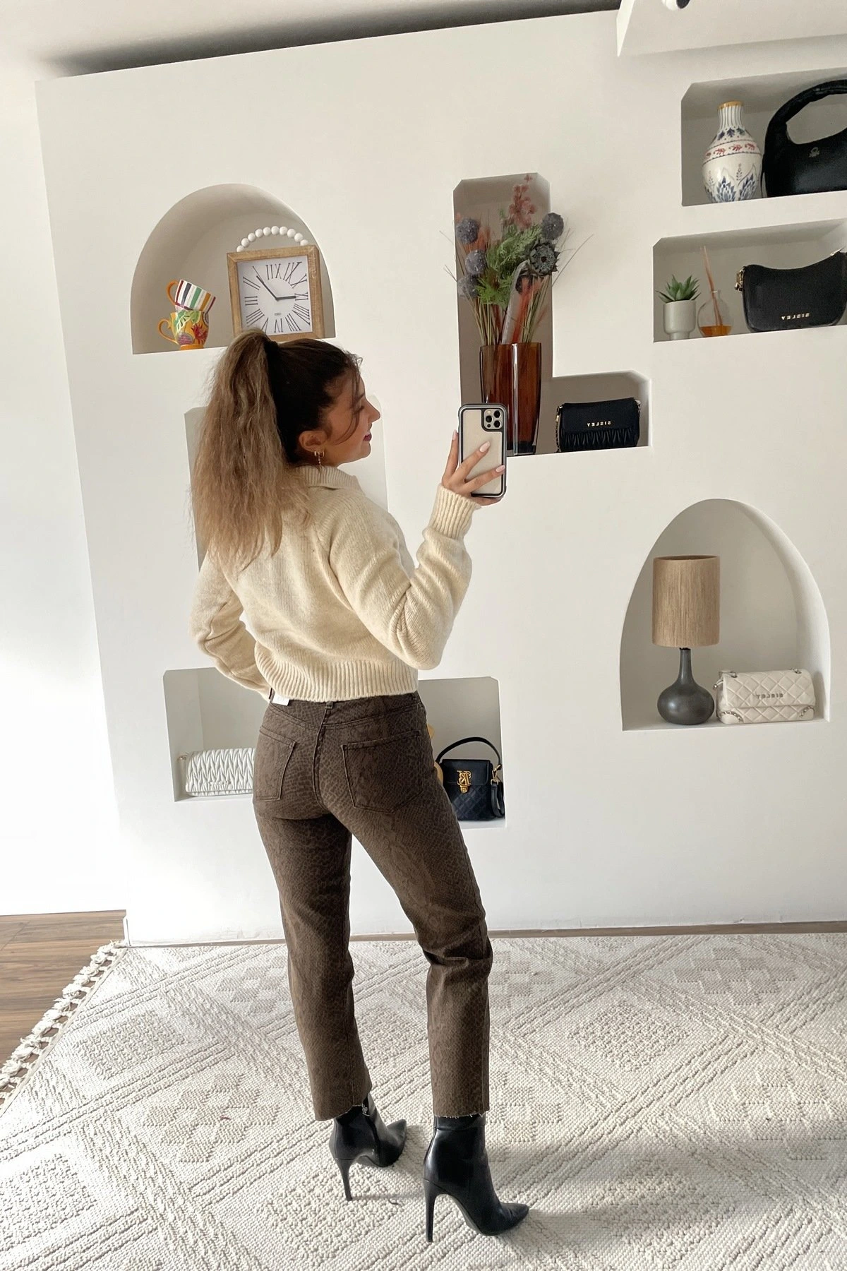 DESENLİ MARKA MODEL KESİK PAÇA LİKRALI BOYFİT JEAN – YILAN DESEN