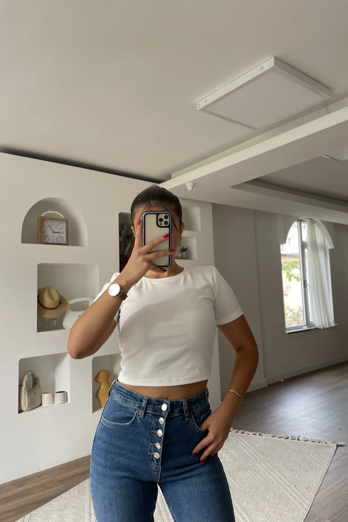 DÜĞMELİ İSPANYOL LİKRALI JEAN – KOYU MAVİ