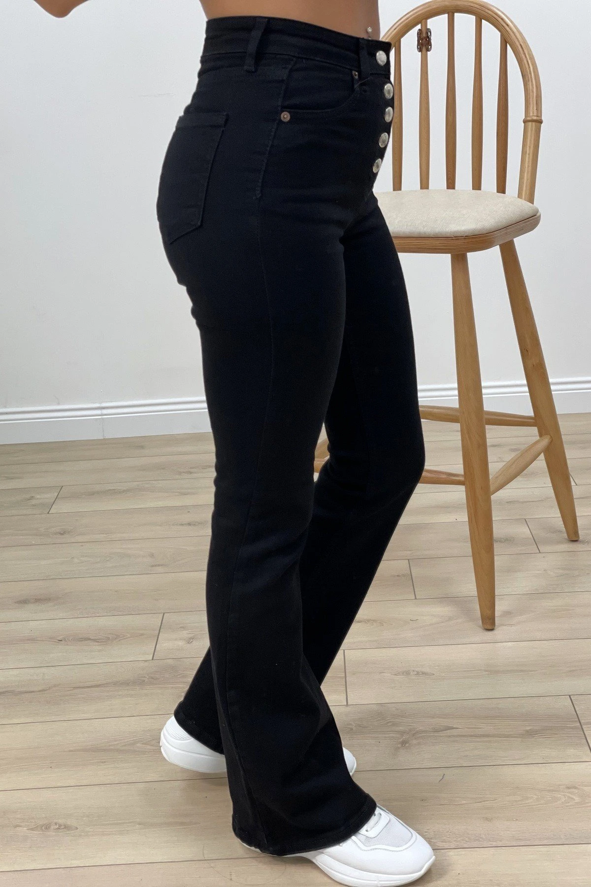 DÜĞMELİ İSPANYOL LİKRALI JEAN – SİYAH