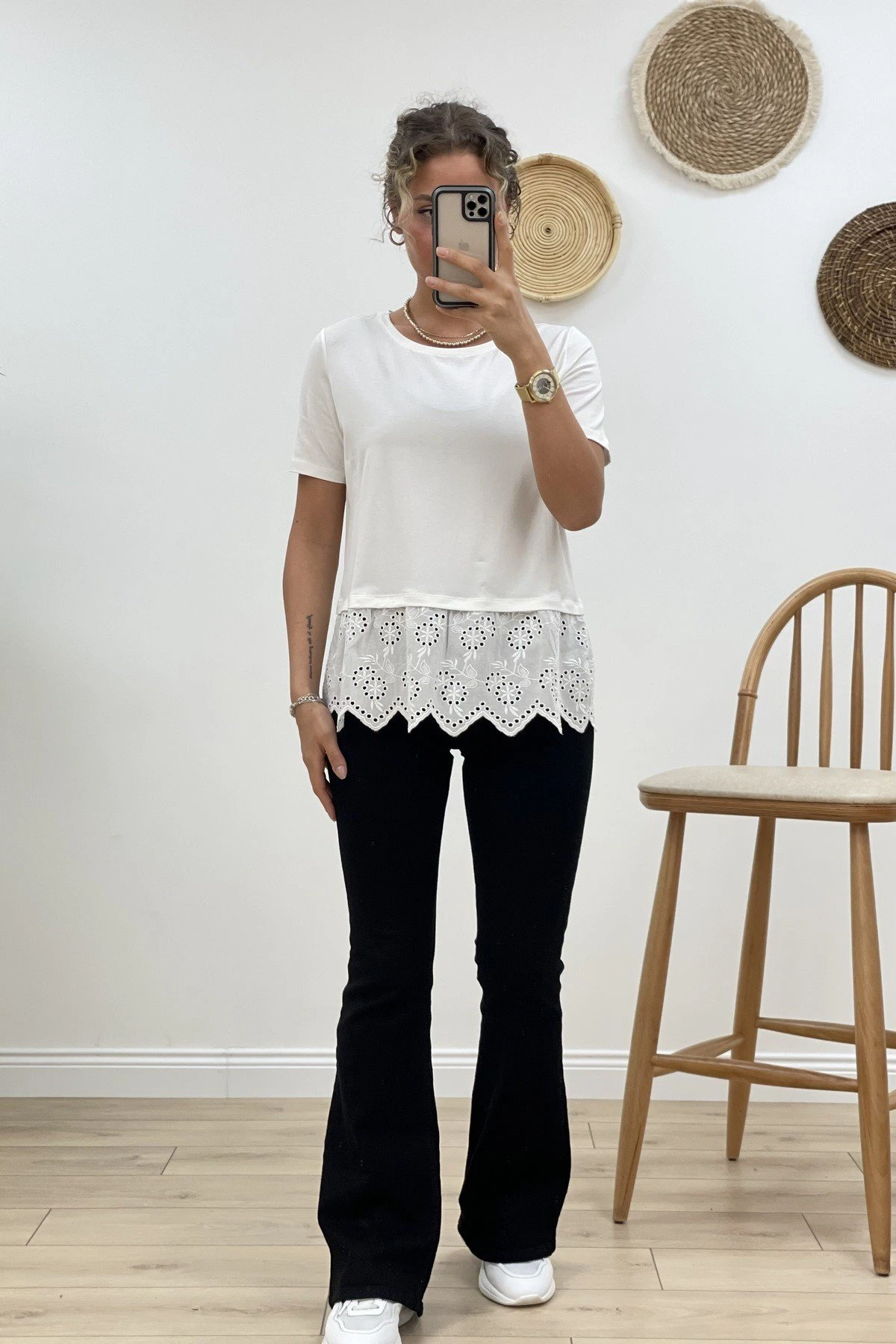 Modelin Üzerindeki Ürün, Serinin en küçük bedeni olan XS-S-26-34-36 Bedenleridir.
