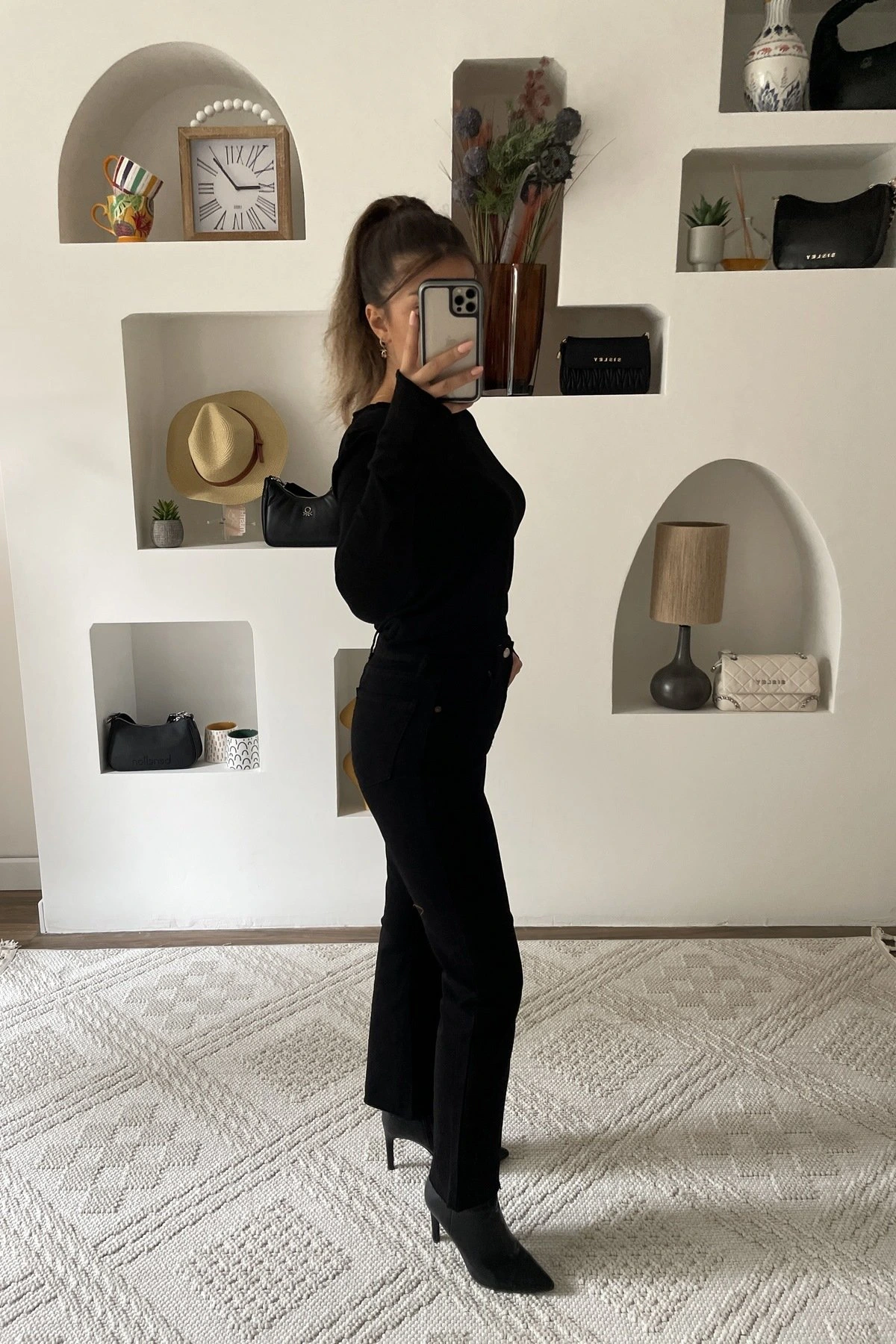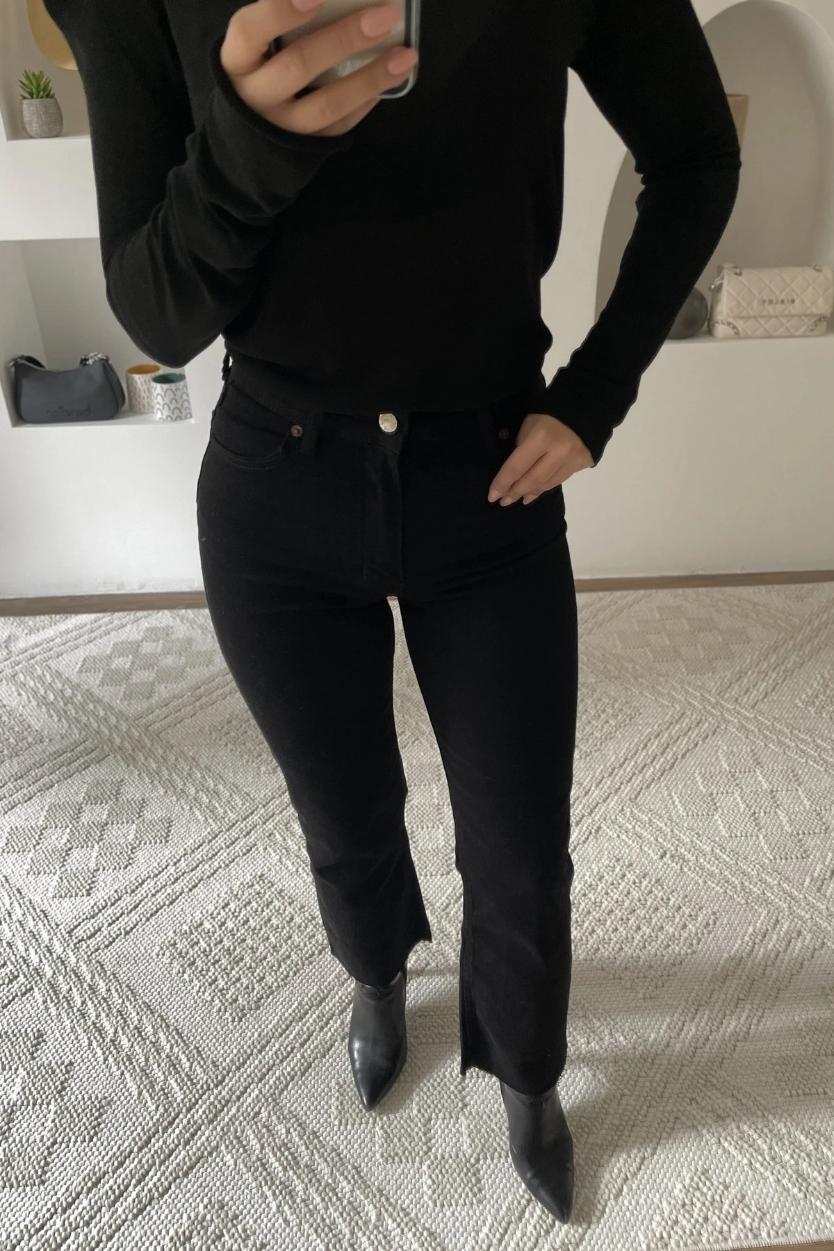FLARE LİKRALI KESİK PAÇA JEAN – SİYAH