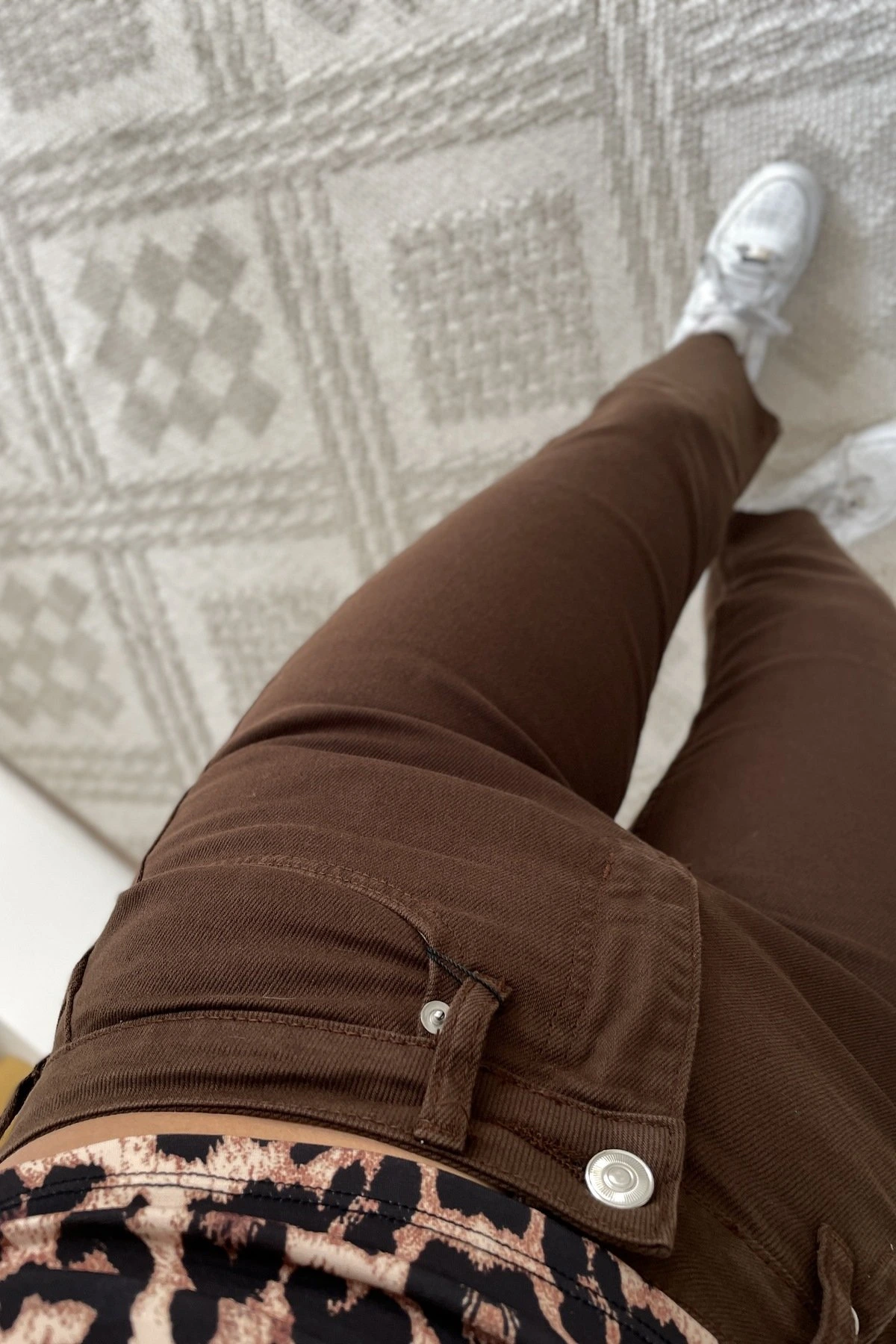 KESİK PAÇA YÜKSEK BEL BOYFİT LİKRALI JEAN – KAHVE