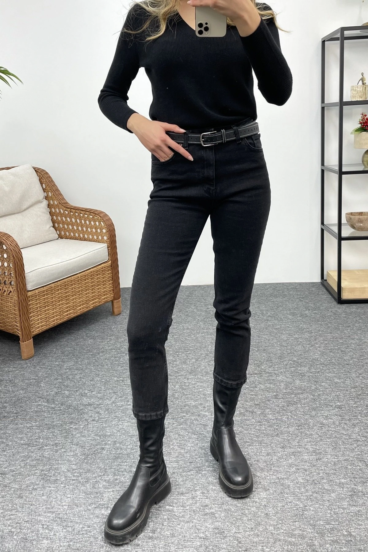 LİKRALI MOM JEAN – SİYAH