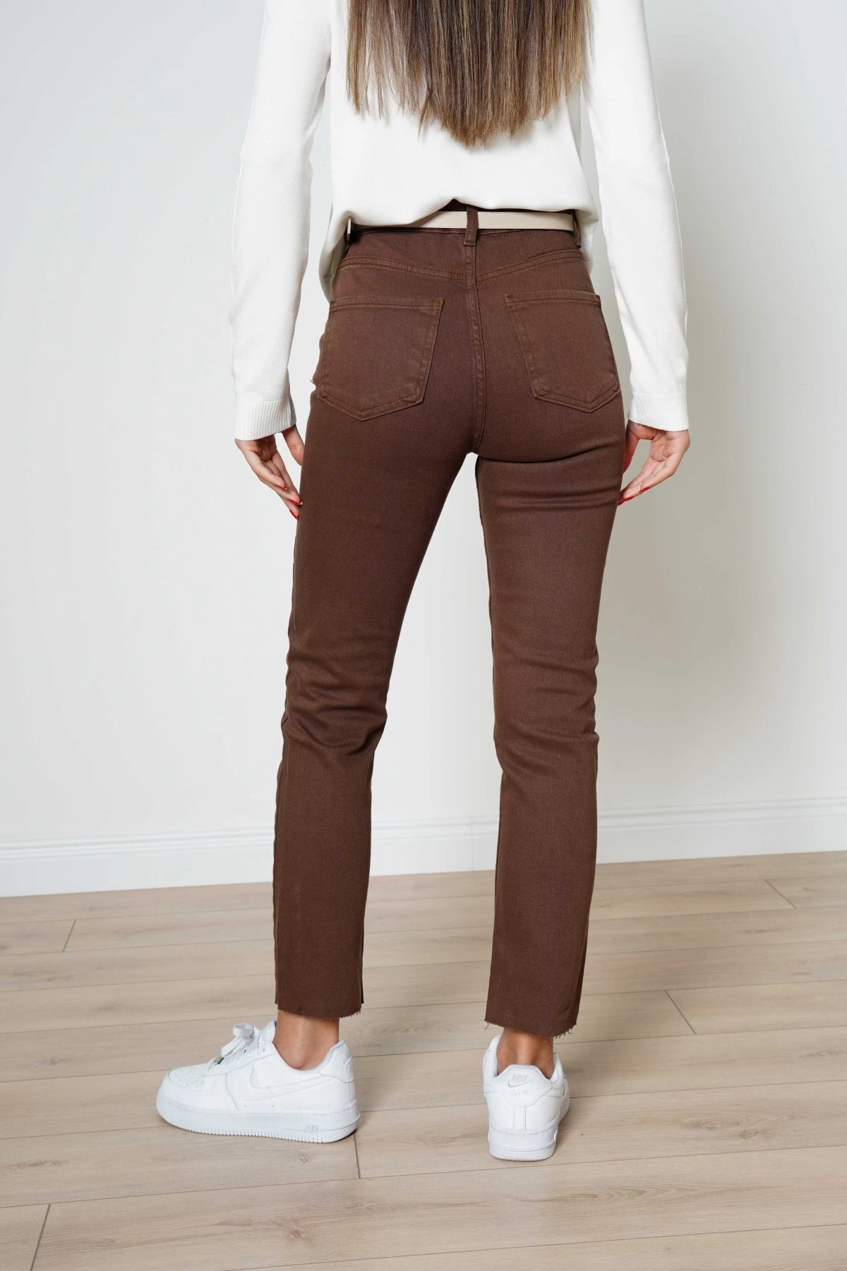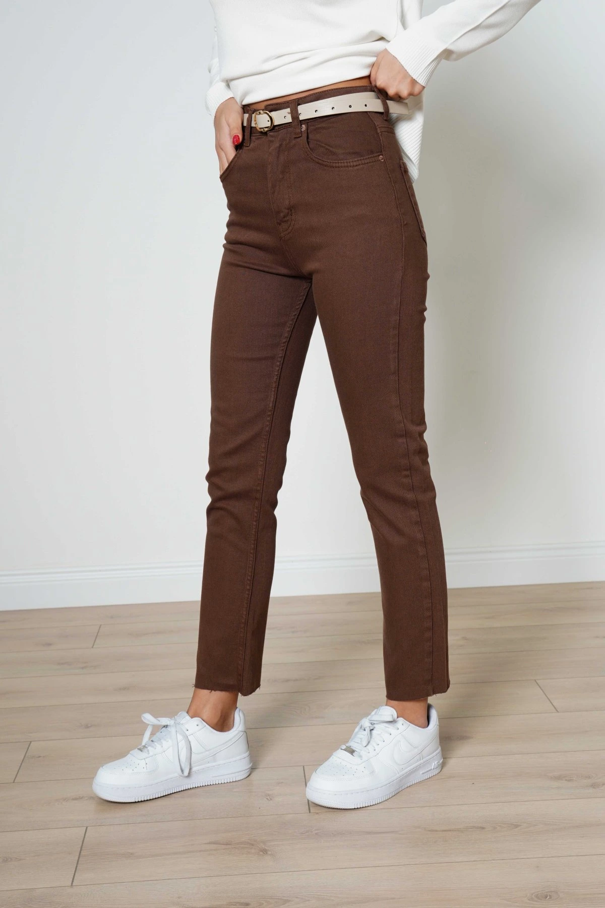 MARKA MODEL RENKLİ LİKRALI BOYFİT JEAN – KAHVE