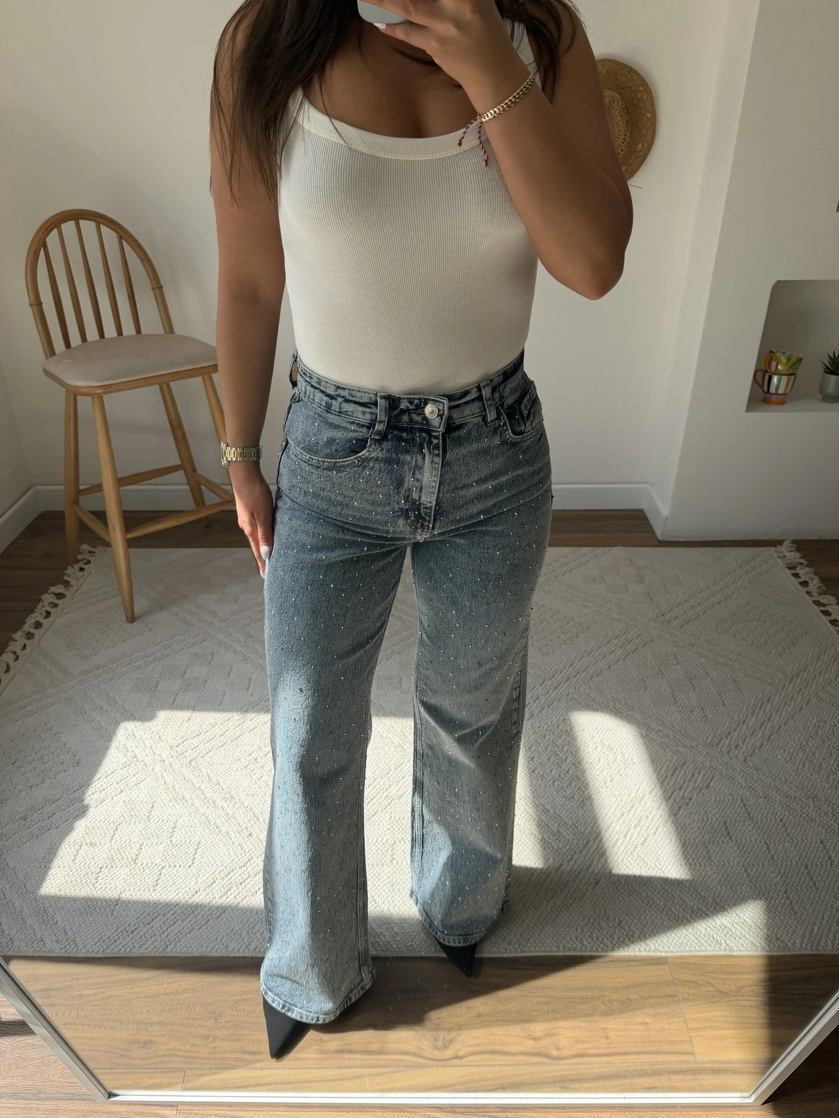 MASSİ ORJİNAL PAÇA TAŞLI WİDE LEG JEAN – MAVİ