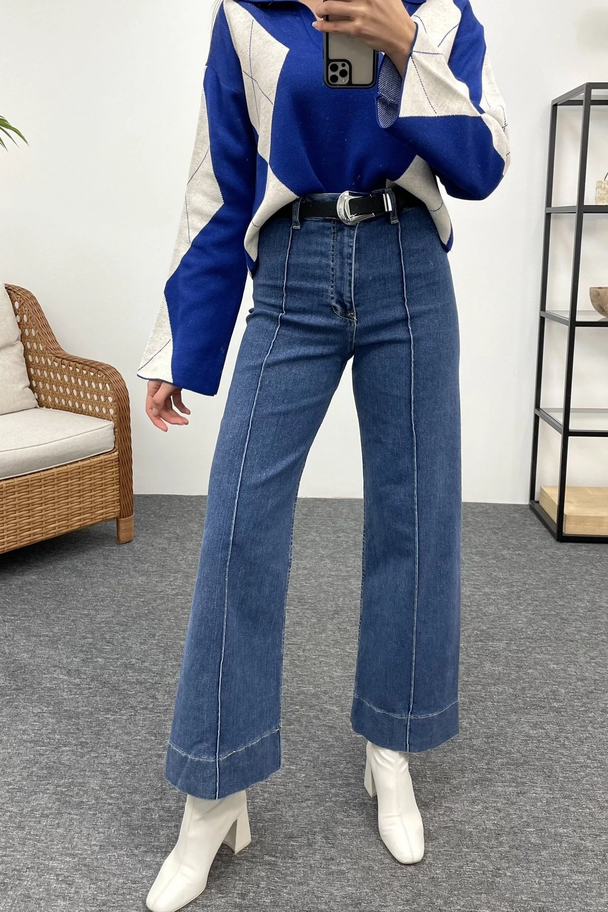 ÖNDEN DİKİŞLİ LİKRALI JEAN – ORTA MAVİ