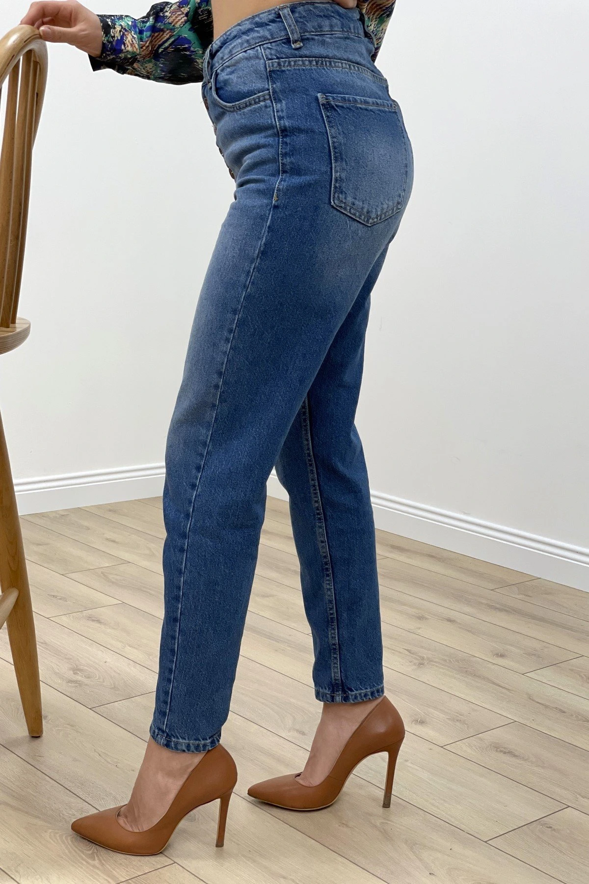 ÖNÜ DÜĞMELİ MOM – MAVİ