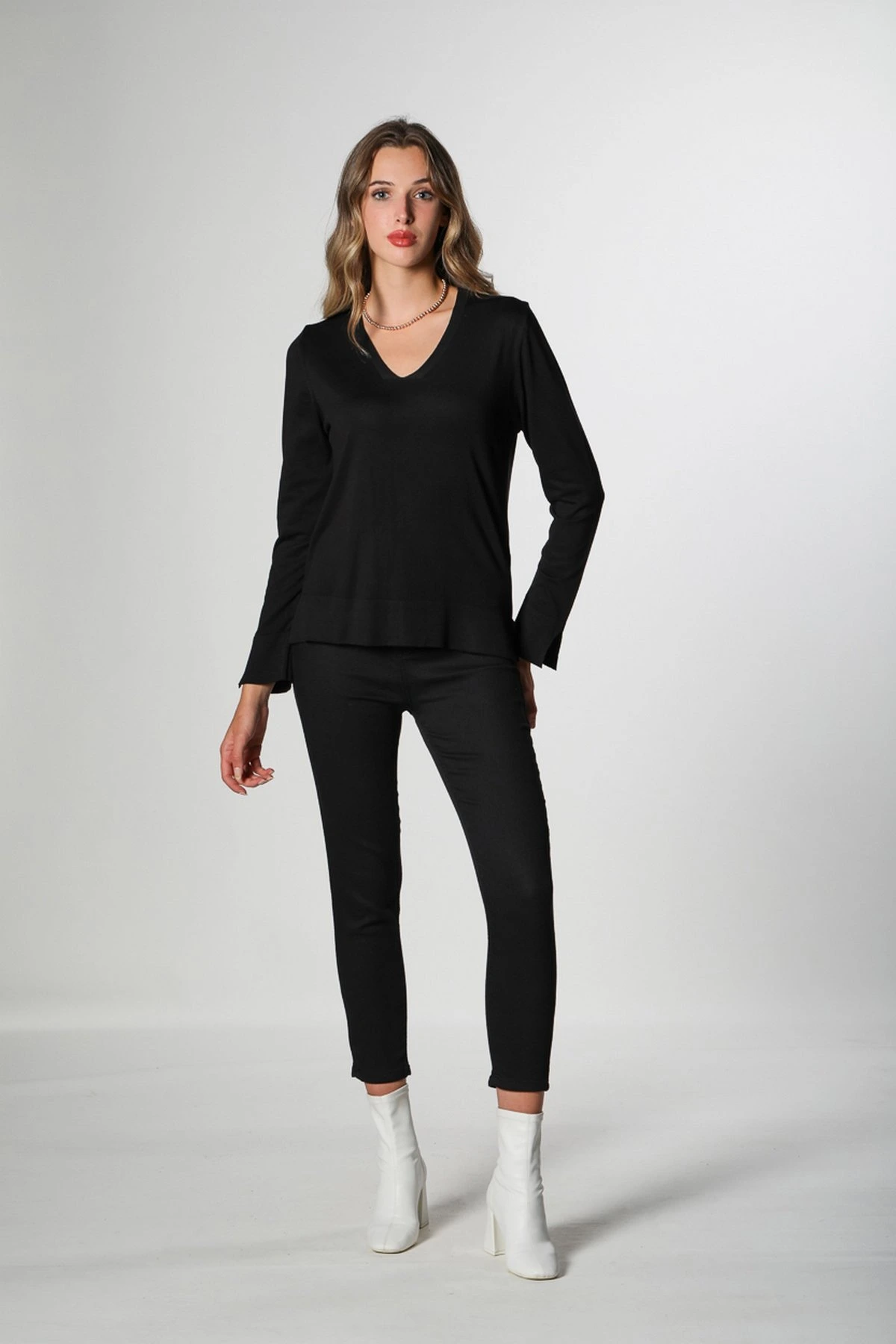 Modelin Üzerindeki Ürün, Serinin en küçük bedeni olan XS-S-26-34-36 Bedenleridir.