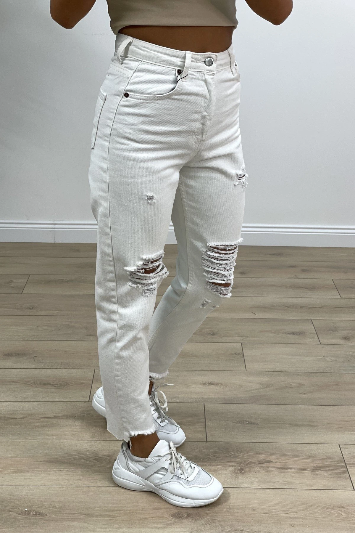 YIRTIKLI MOM JEAN – BEYAZ