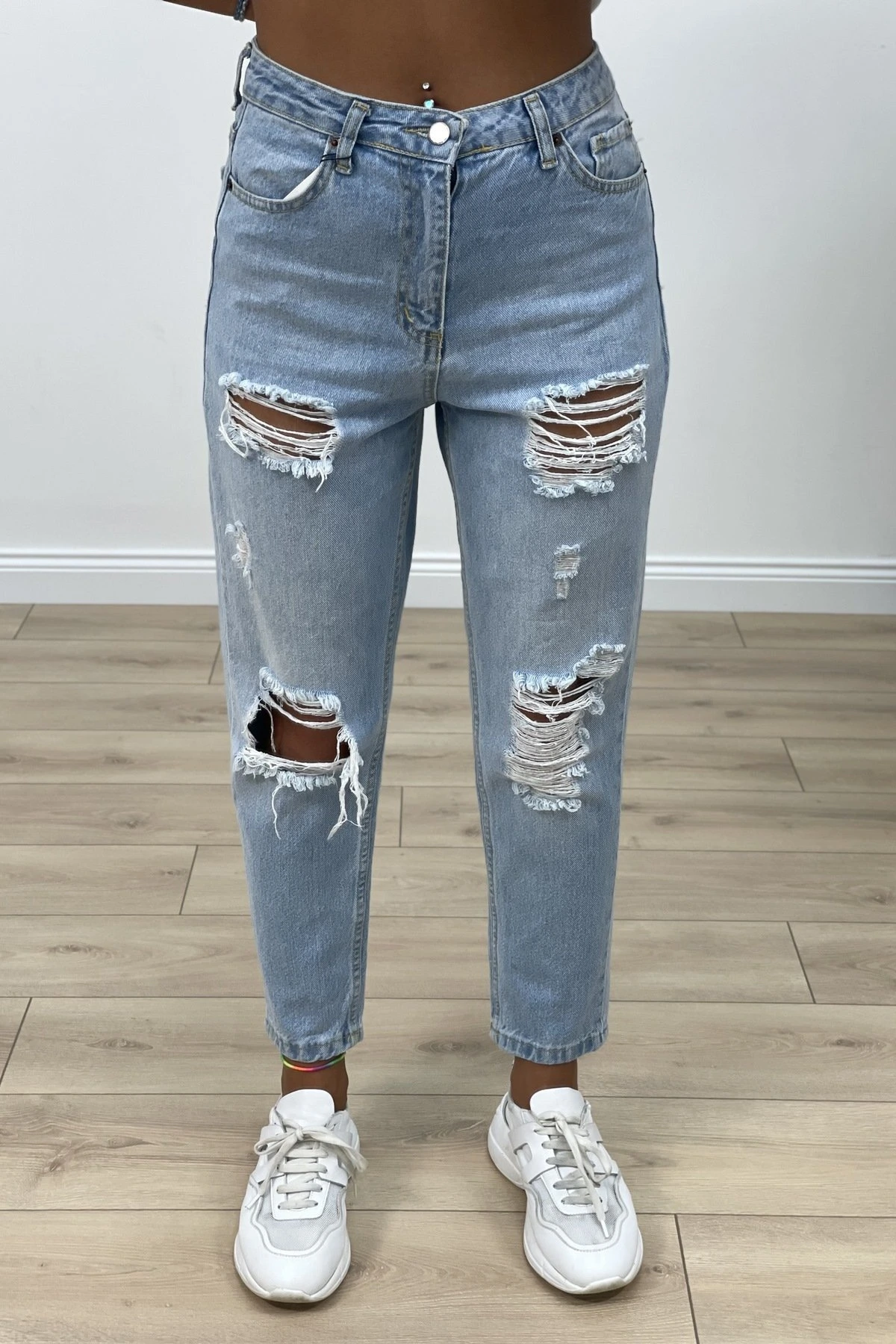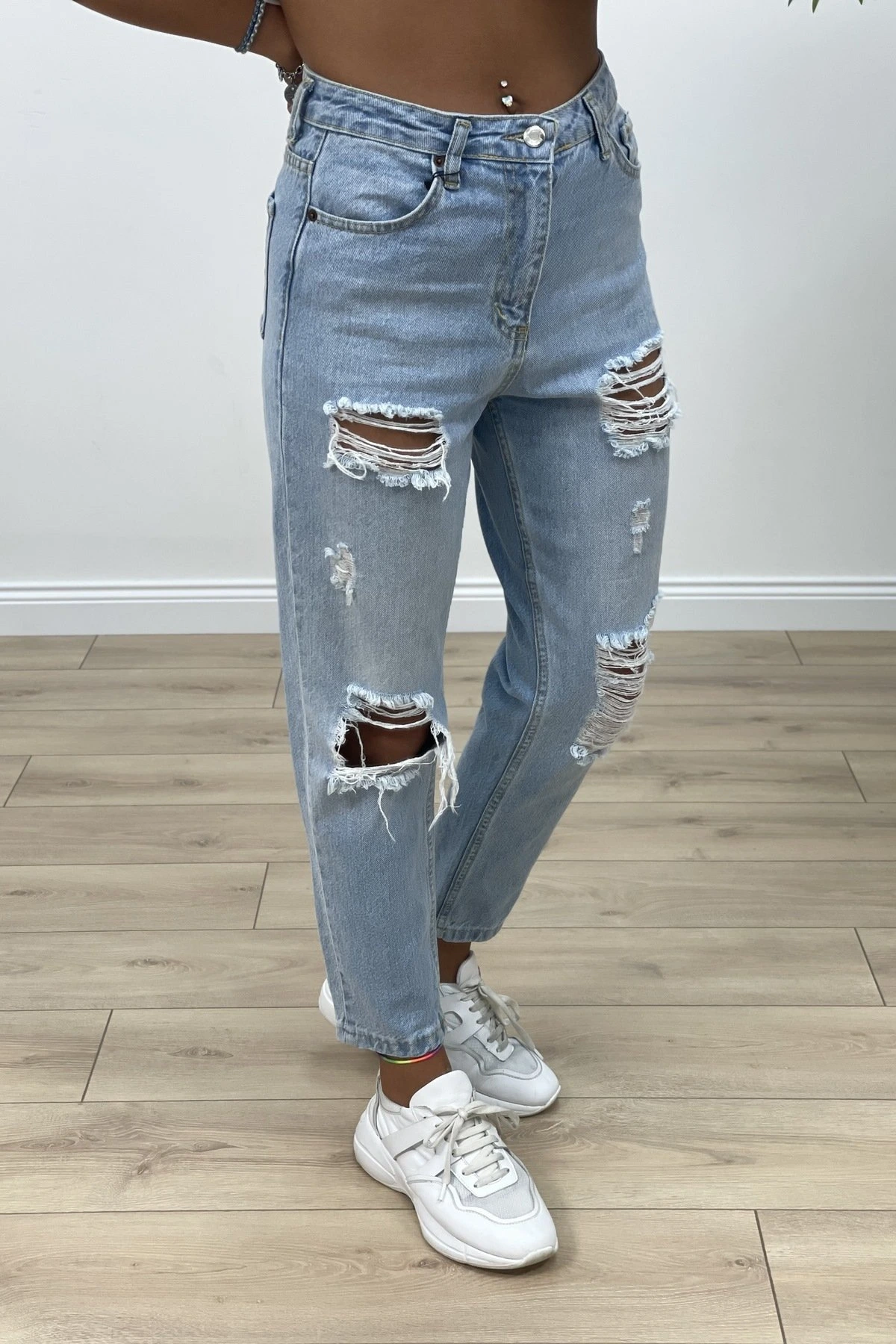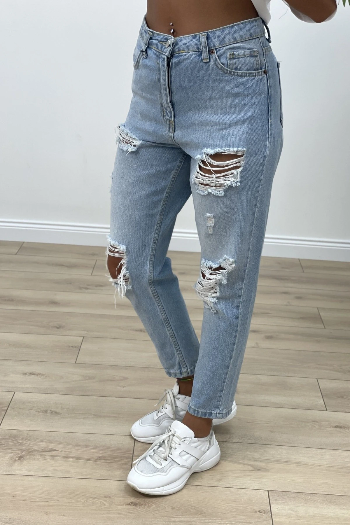 YIRTIKLI MOM JEAN – ORTA MAVİ