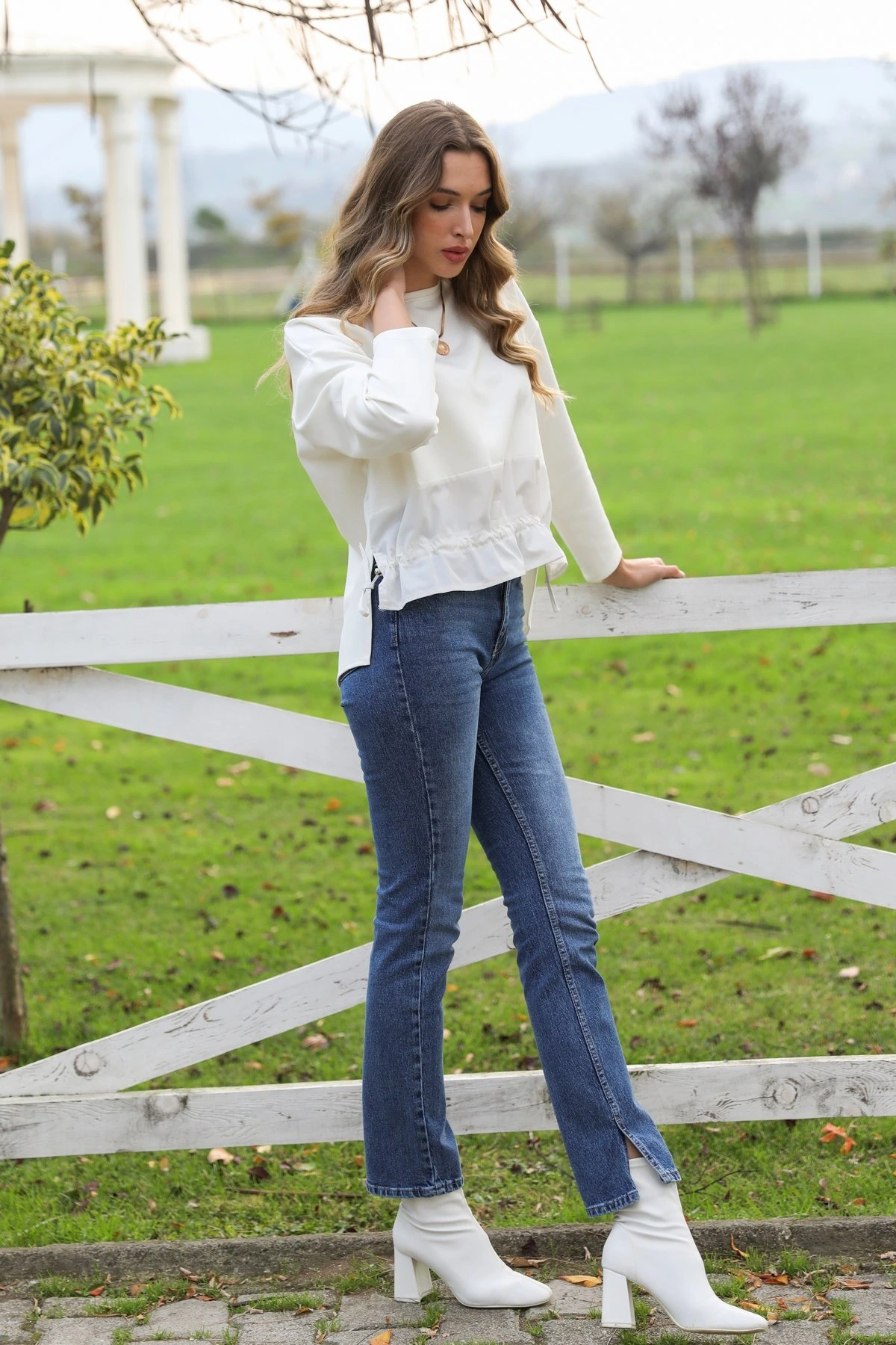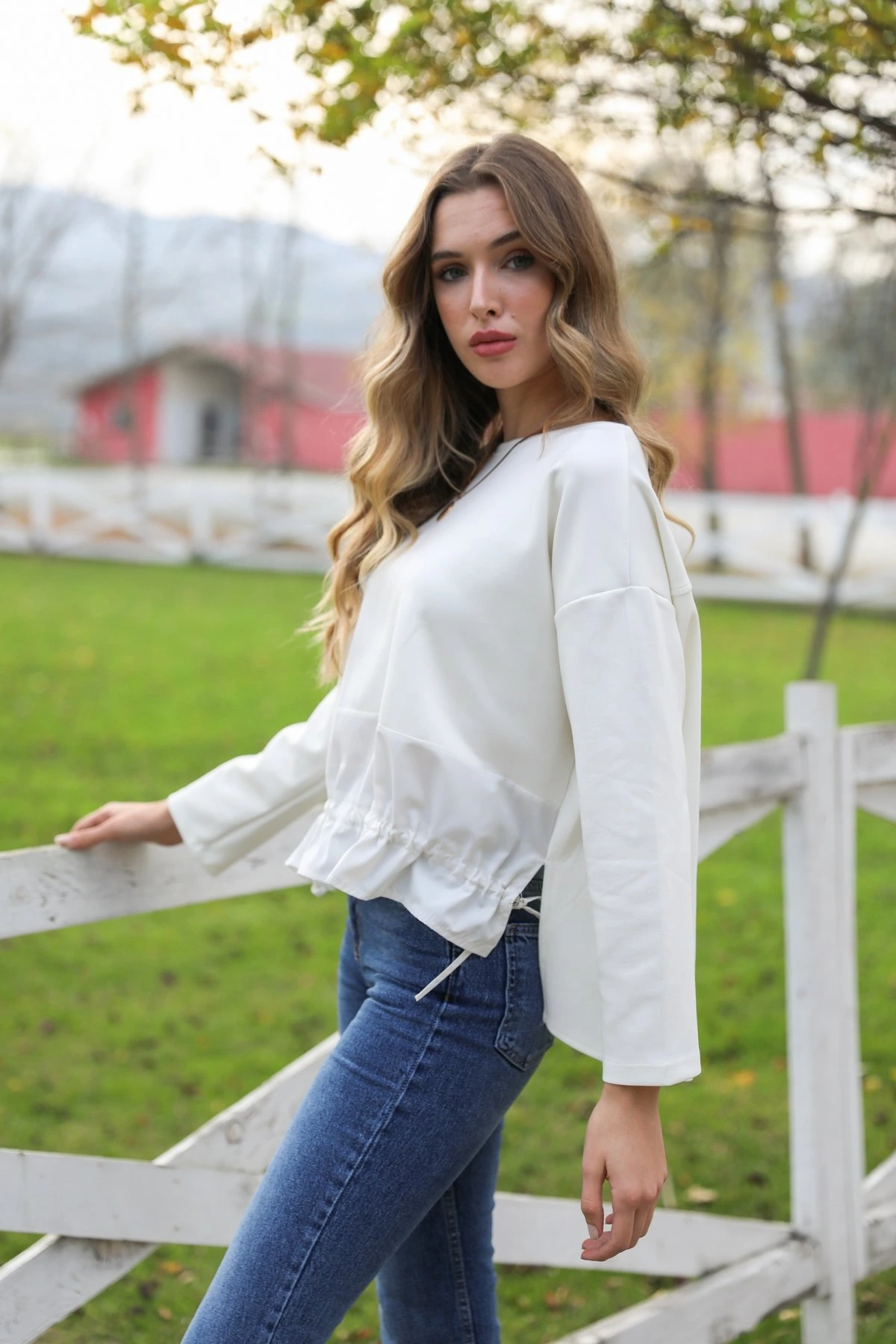 Modelin Üzerindeki Ürün, Serinin en küçük bedeni olan XS-S-26-34-36 Bedenleridir.