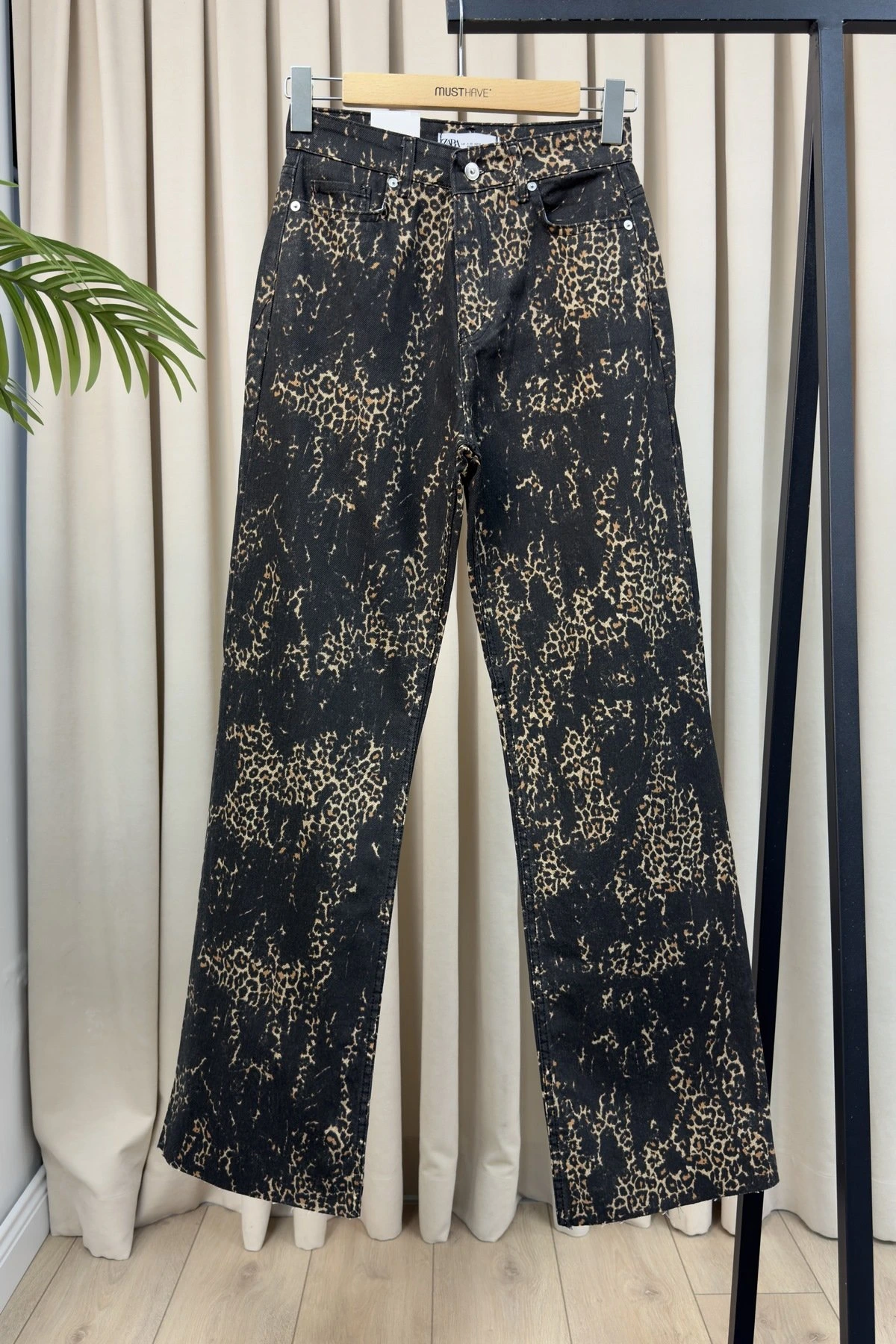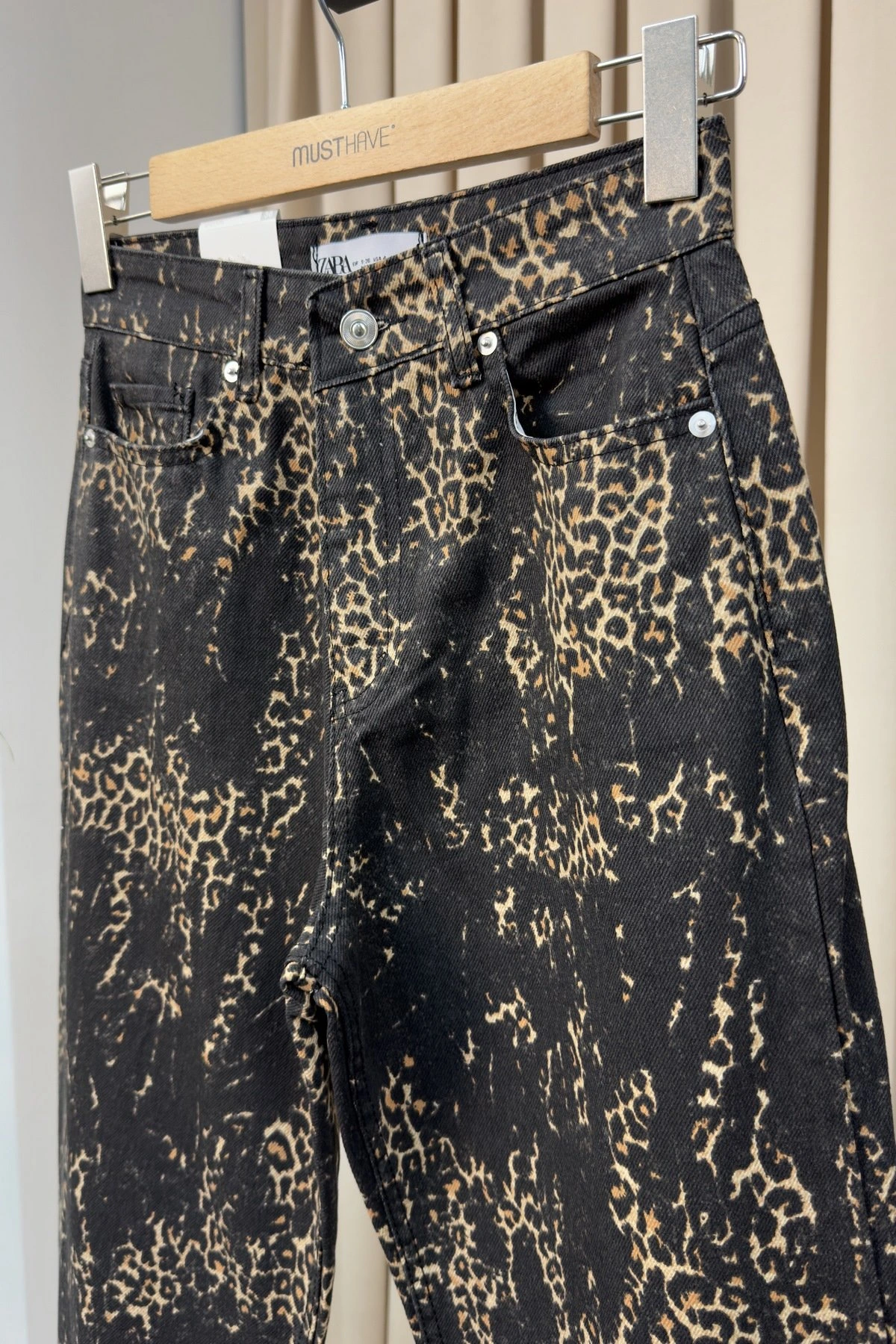 YÜKSEK BEL DESENLİ KESİK PAÇA PALAZZO JEAN – SİYAH-LEOPAR