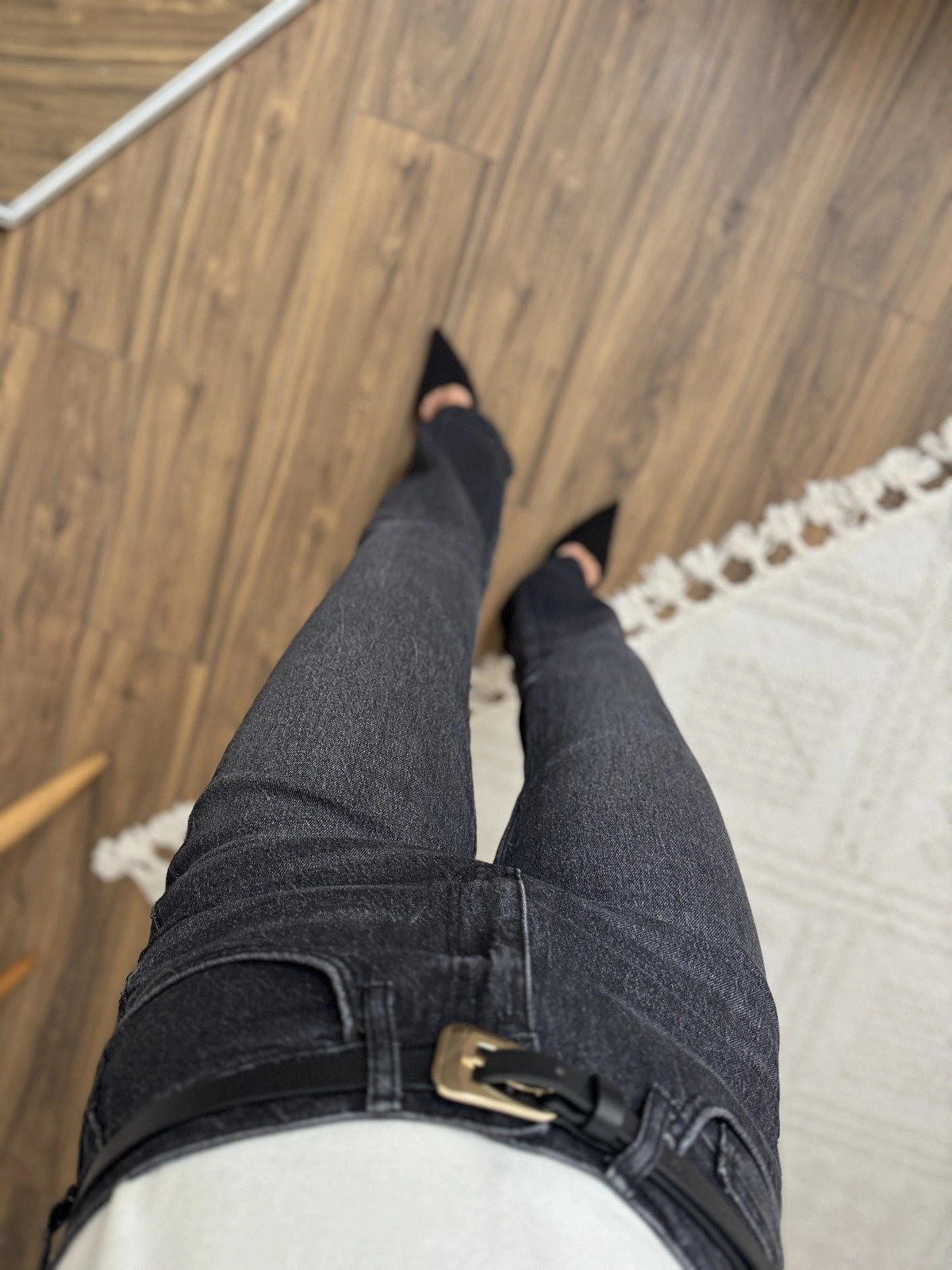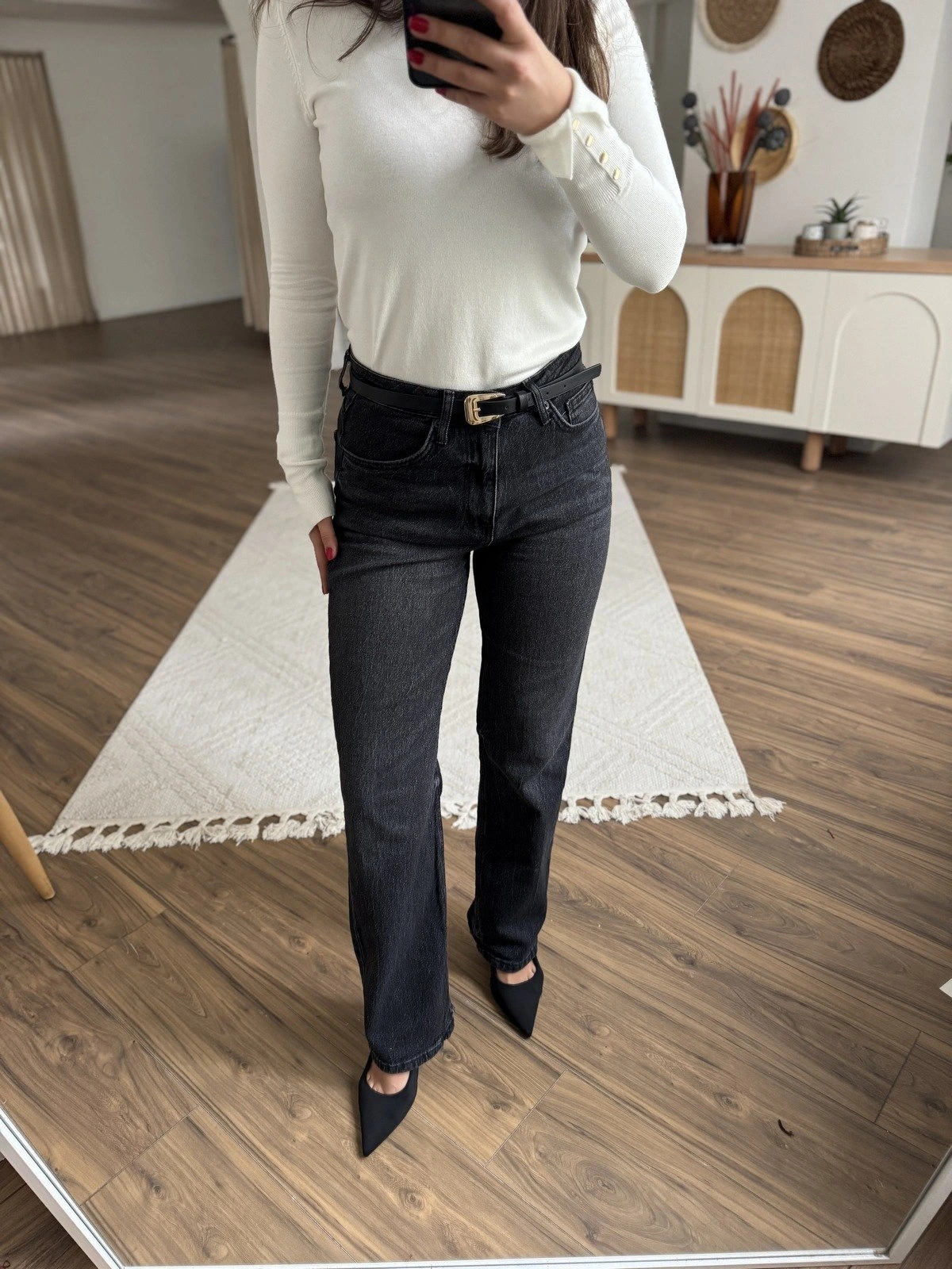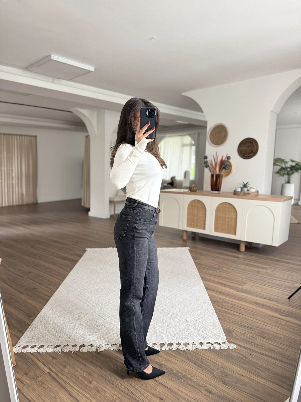 YÜKSEK BEL LİKRALI STRAIGHT JEAN – FÜME