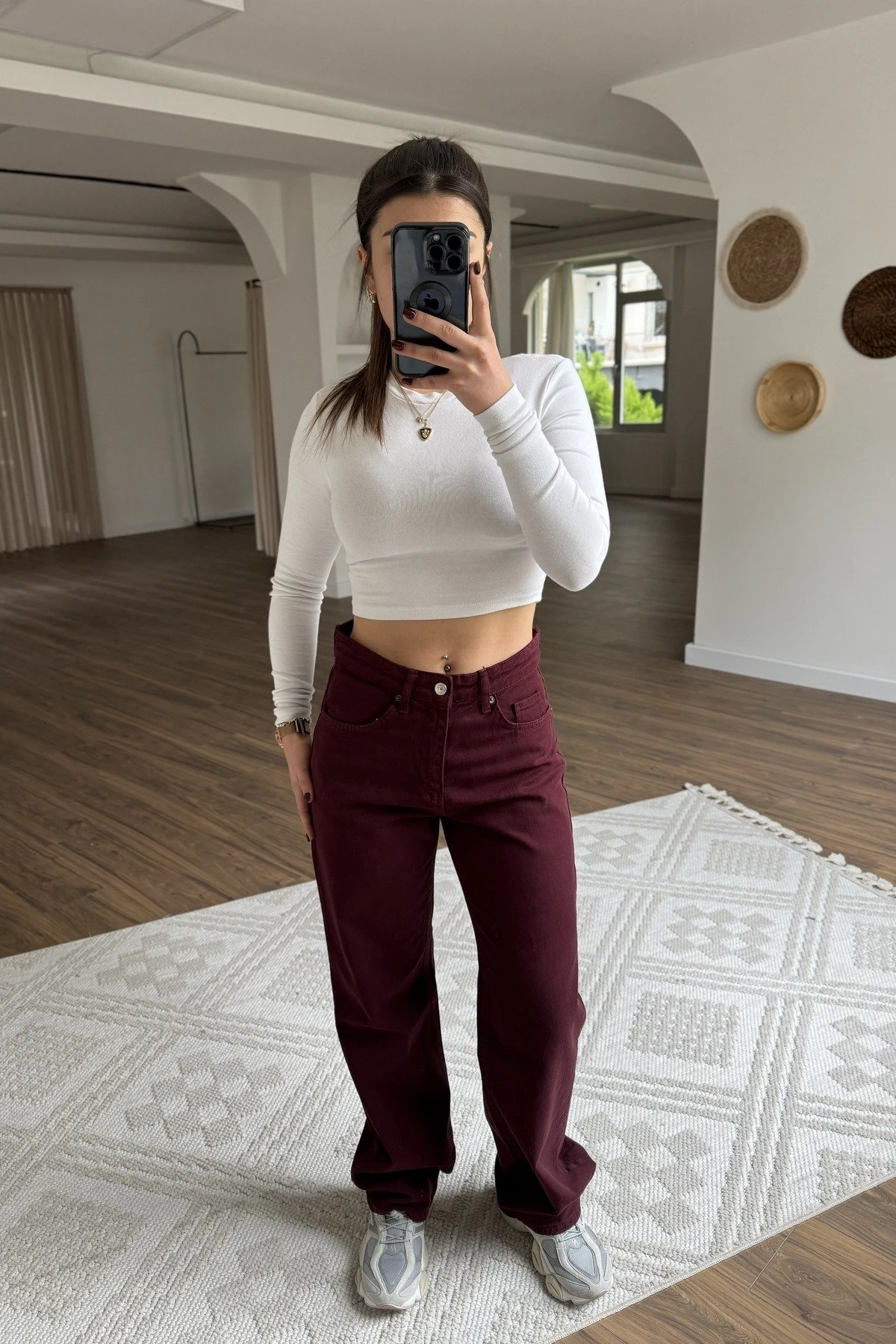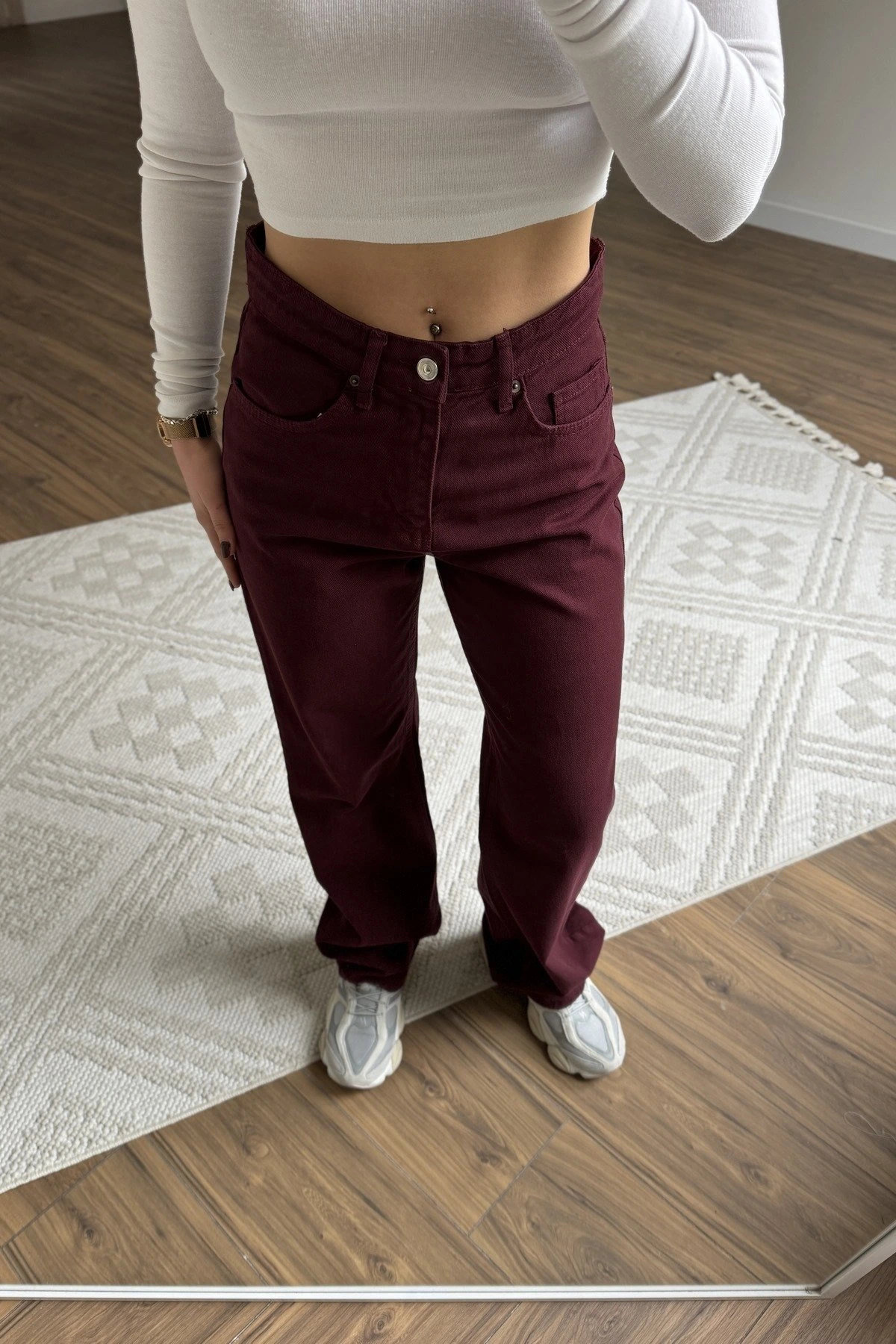 YÜKSEK BEL STRAGHT JEAN – BORDO