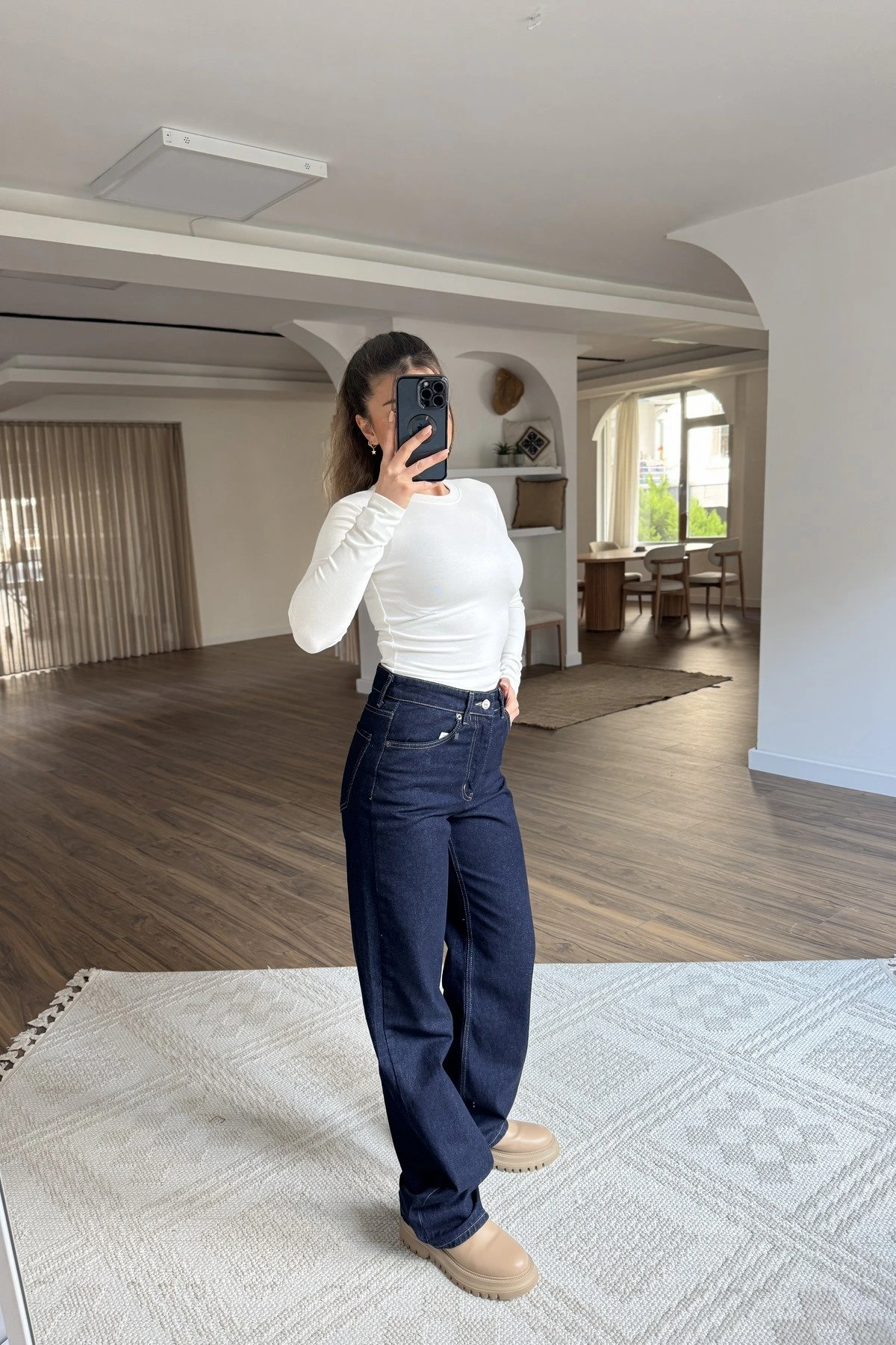 YÜKSEK BEL STRAGHT JEAN – KOYU LACİVERT