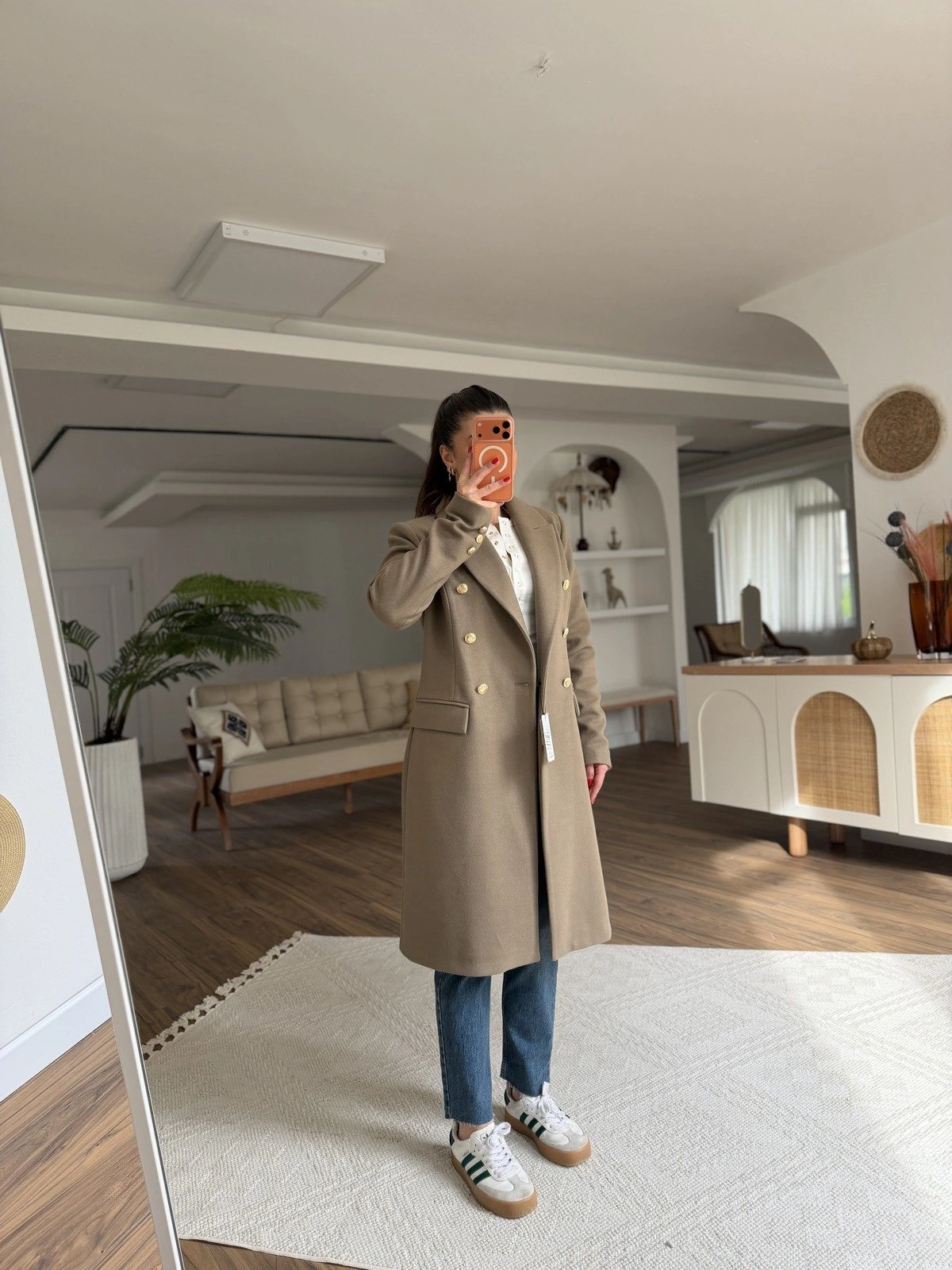 ARKA YIRTMAÇ SİLVER DÜĞME KRUVAZE KAŞE KABAN - KAHVE