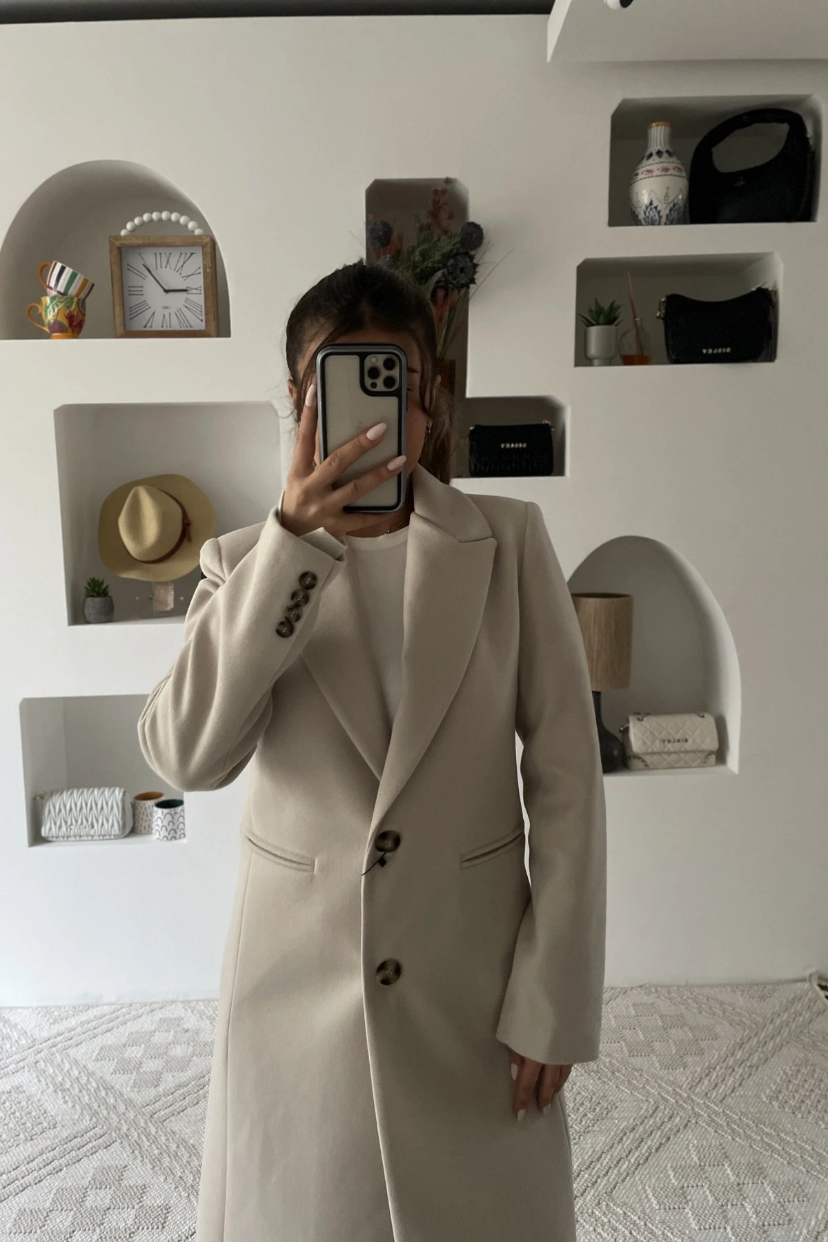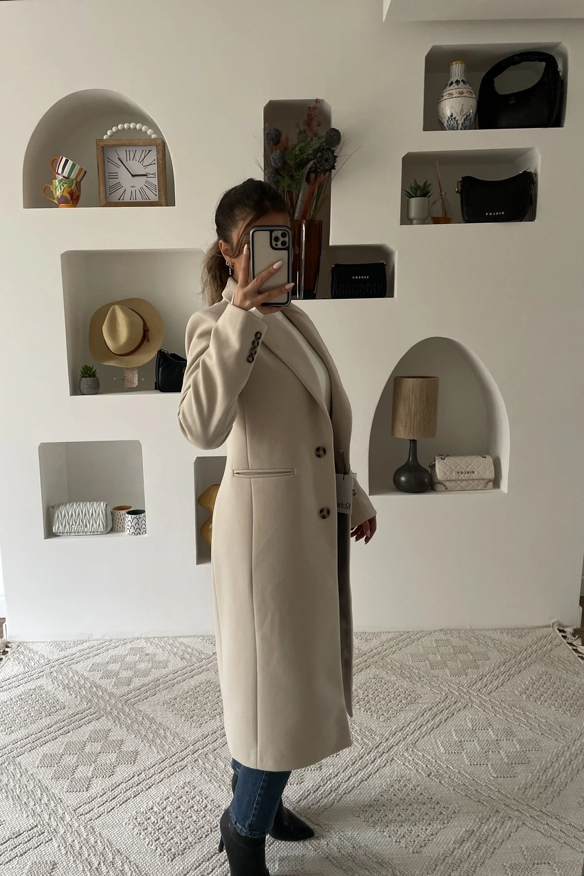 ÇİFT DÜĞME ASTARLI MİDİ KAŞE KABAN – TAŞ