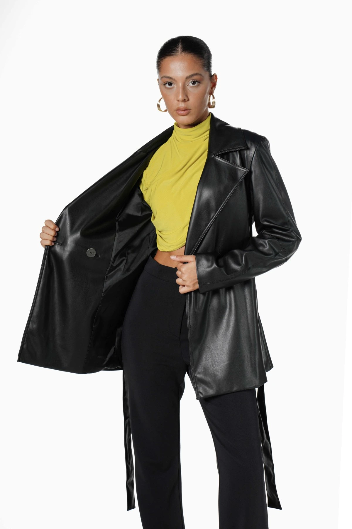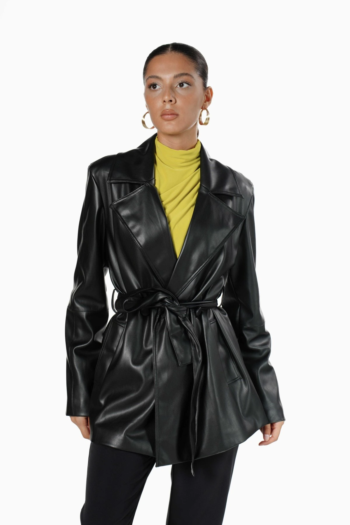 ÇİMALI DERİ KUŞAKLI KABAN – SİYAH