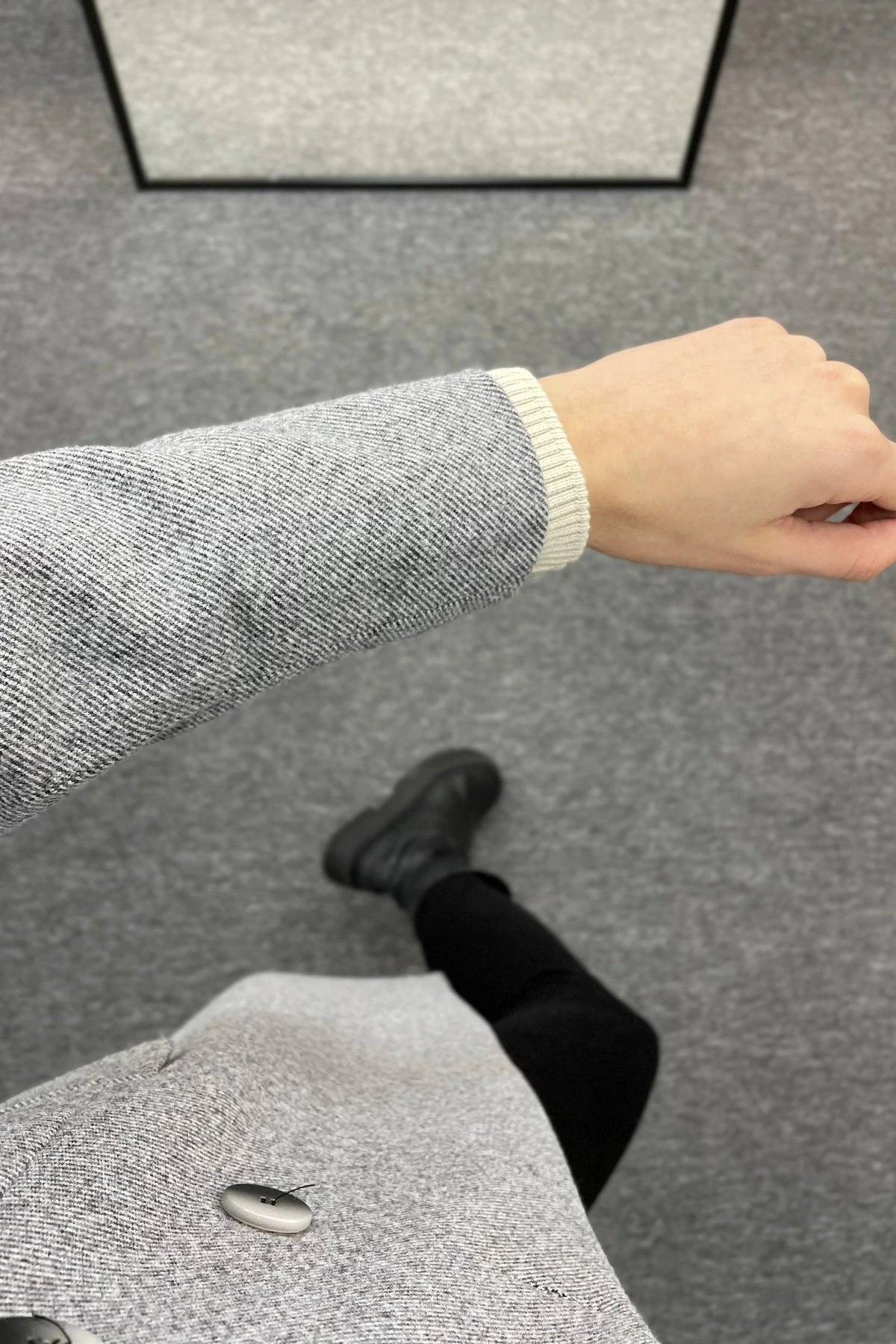 TEK DÜĞME YÜN EFEKT CEKET - SİYAH