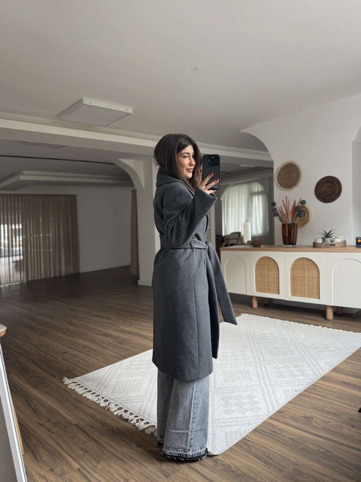 GENİŞ ŞALYAKA KUŞAKLI CEPLİ KAŞE KABAN – ANTRASİT