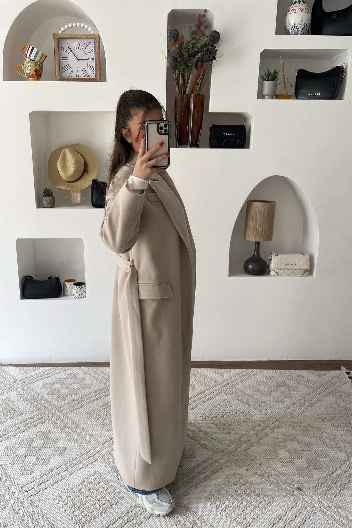 KAPAK CEP BEL KUŞAK ASTARLI UZUN KAŞE KABAN - CAMEL