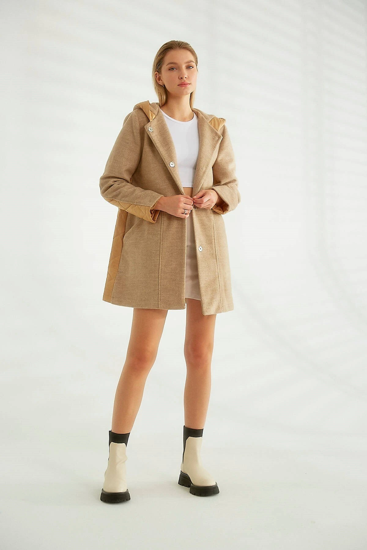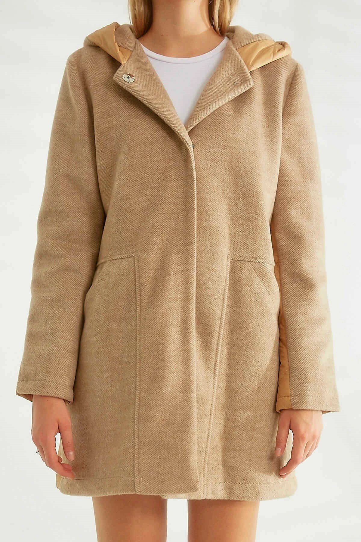 KAPÜŞONLU KAPİTONE DETAY YÜN KABAN – BEJ
