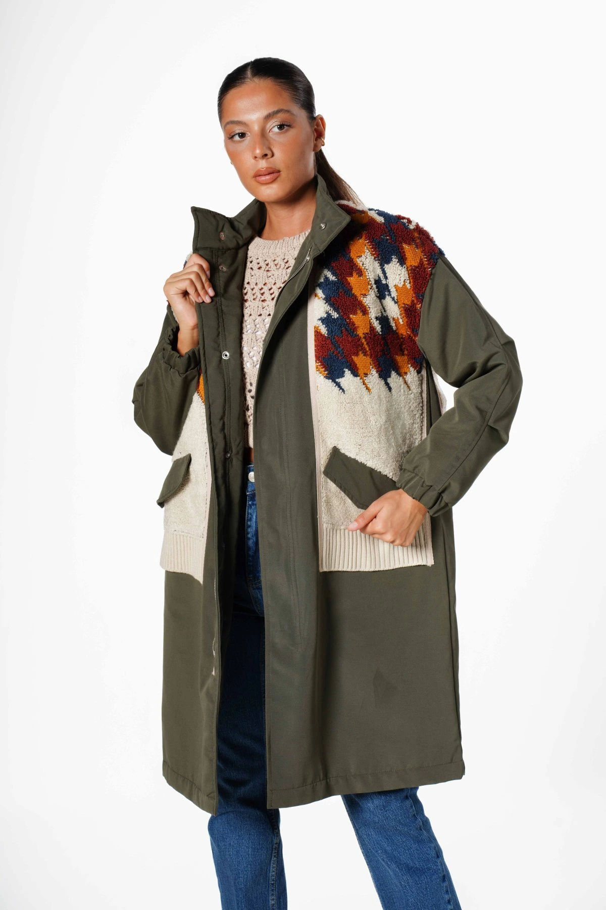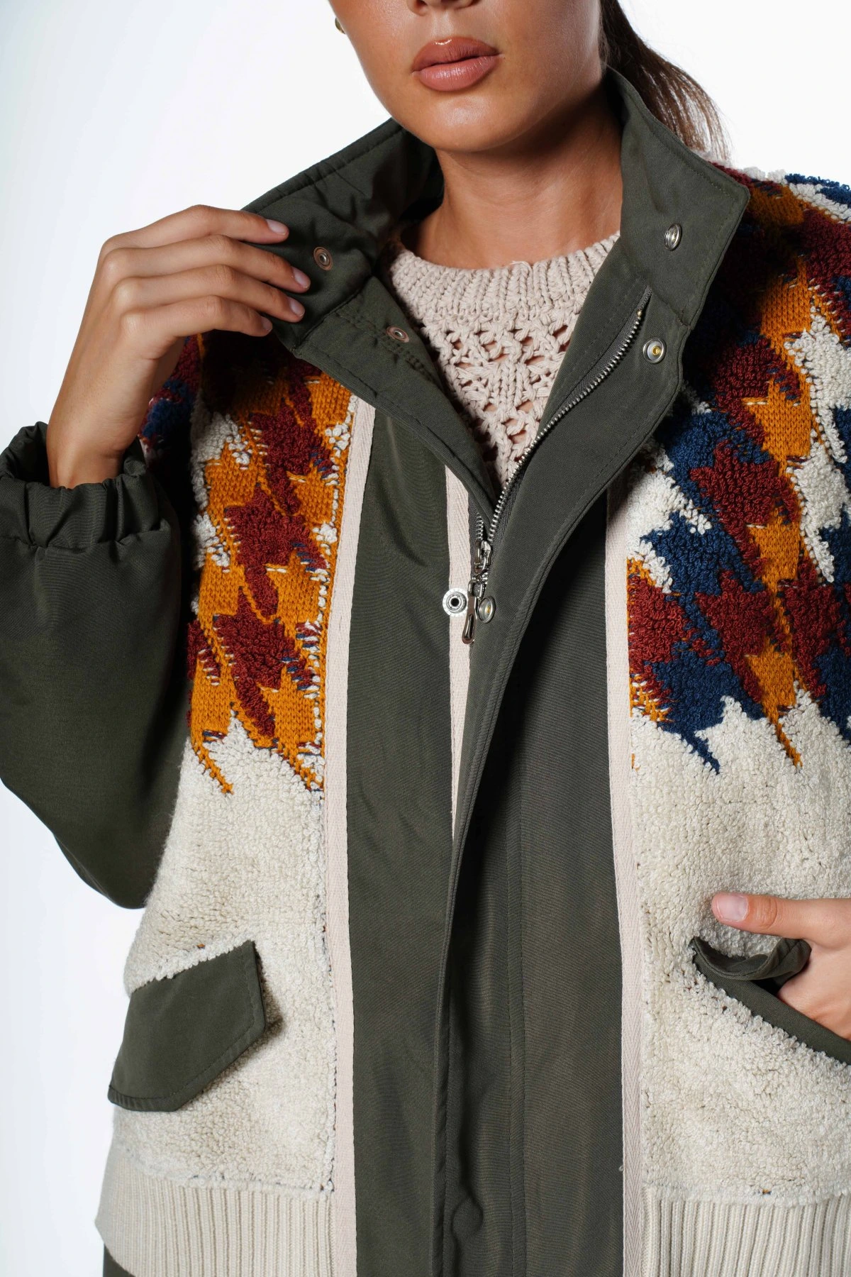 KAZAYAĞI DOKUMA DETAY KABAN – HAKİ