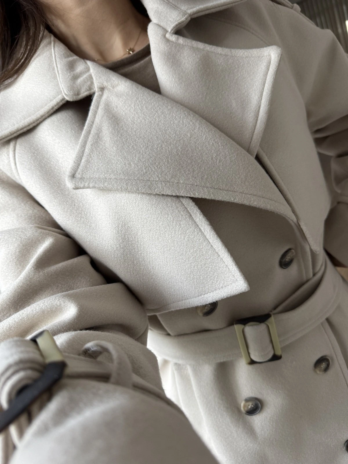 OMUZ APOLET KAPAKLI KUŞAKLI KRUVAZE KAŞE KABAN - GRİ