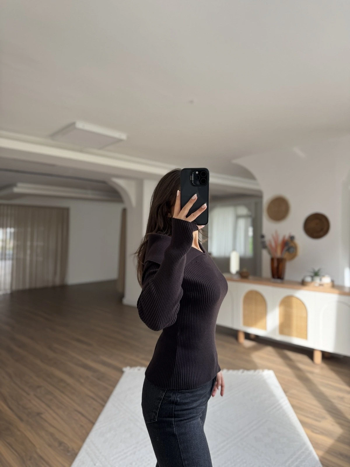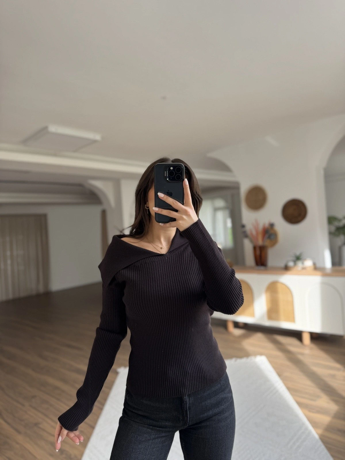 ASİMETRİK KAT YAKA YÜN KARIŞIM KAZAK – KOYU KAHVE