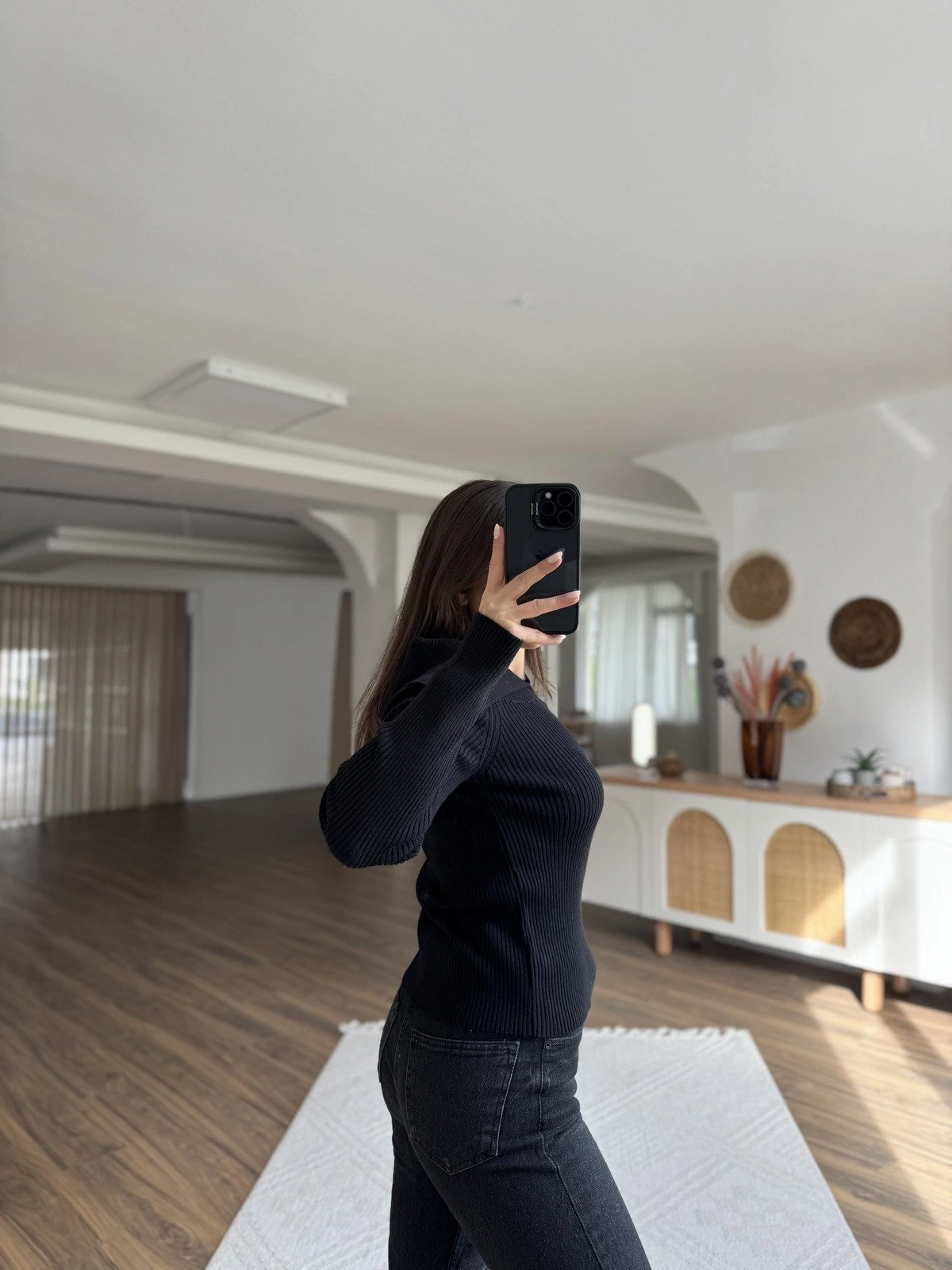 ASİMETRİK KAT YAKA YÜN KARIŞIM KAZAK – SİYAH