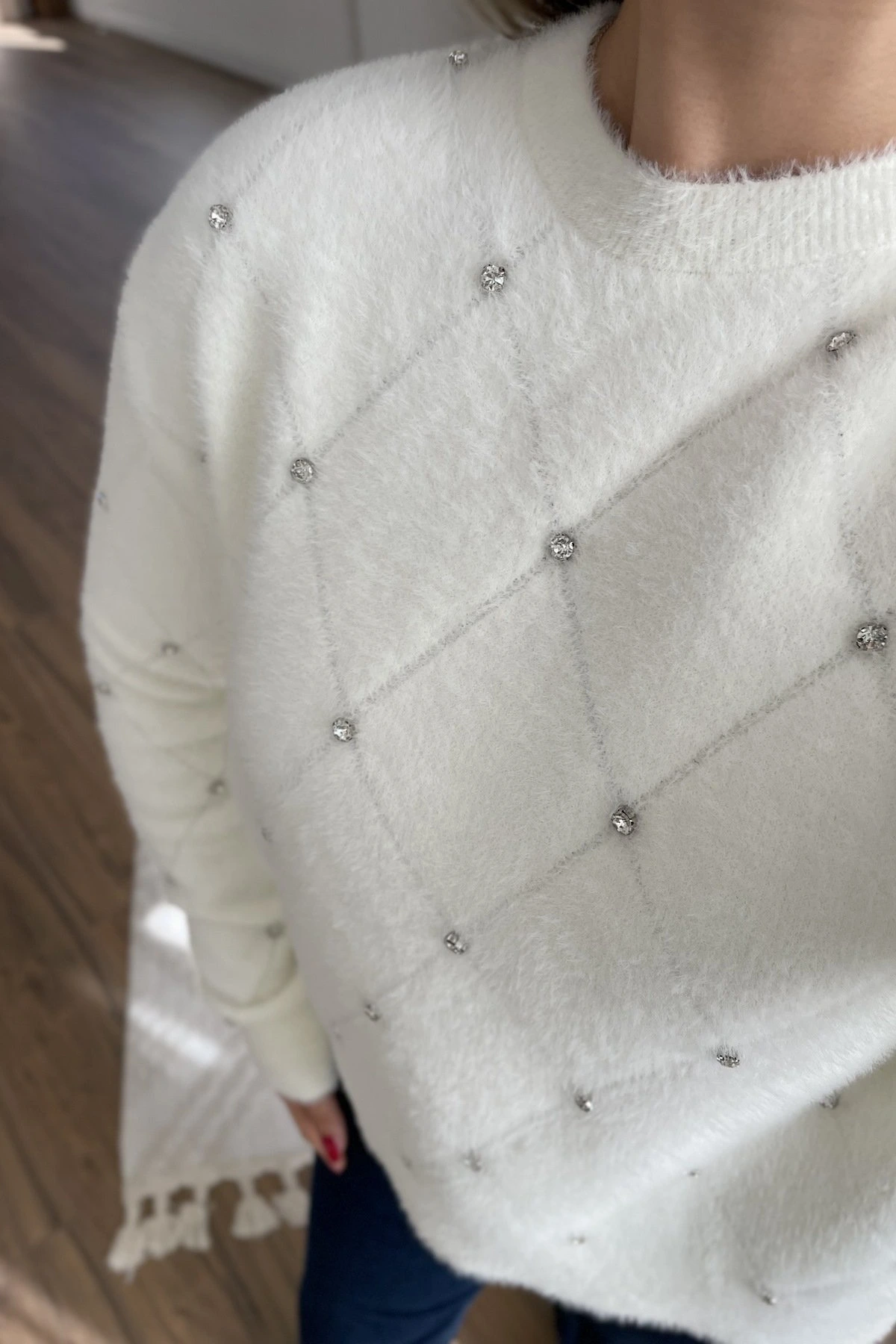 BAKLAVA DESEN TAŞ ÇAKIM YUMOŞ KAZAK – EKRU