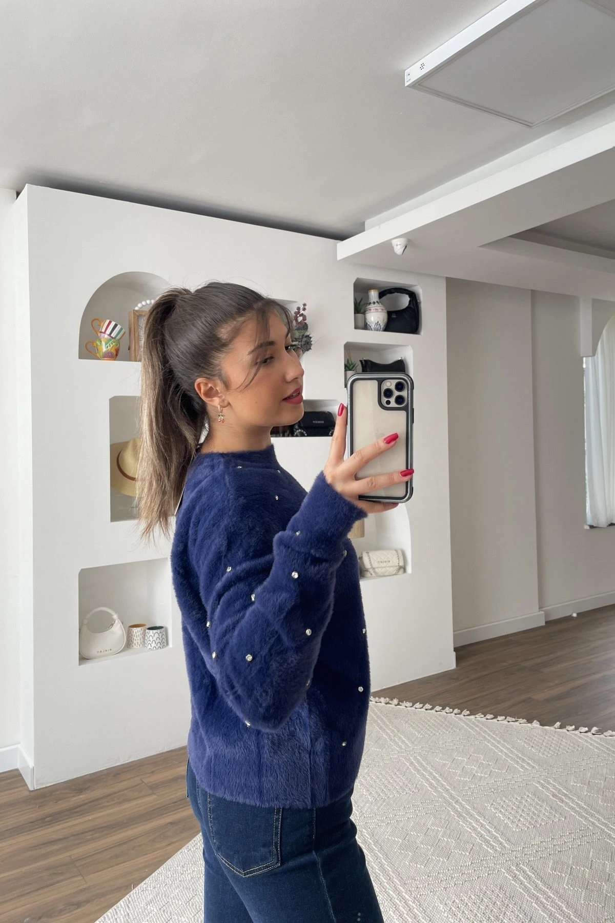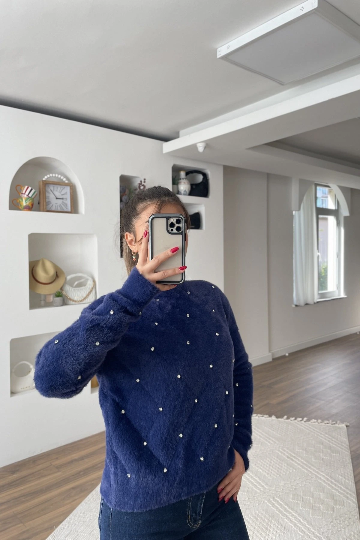 BAKLAVA DESEN TAŞ ÇAKIM YUMOŞ KAZAK – LACİVERT