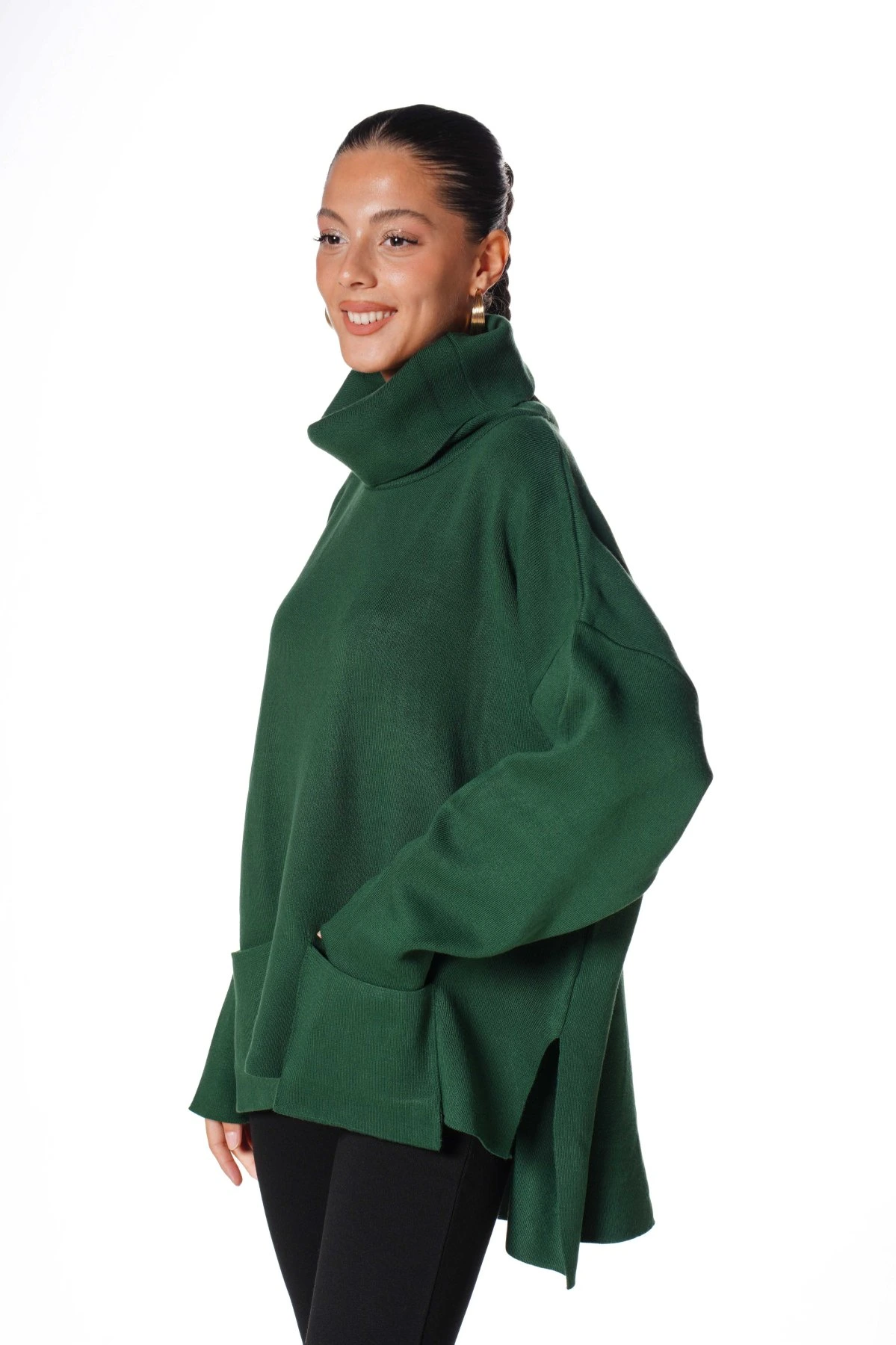 BALIKÇI GENİŞ YAKA ÇİFT CEP YAN YIRTMAÇLI SALAŞ KAZAK – ZÜMRÜT YEŞİL