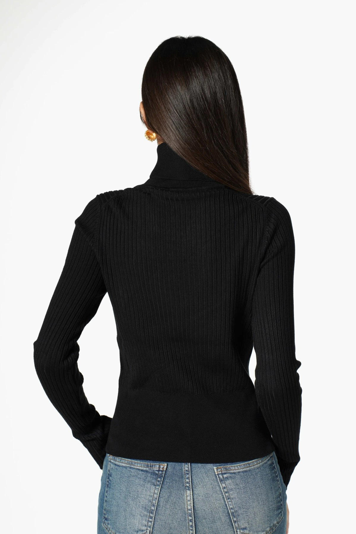 BALIKÇI YAKA BASİC FİTİLLİ VİSKON KAZAK – SİYAH