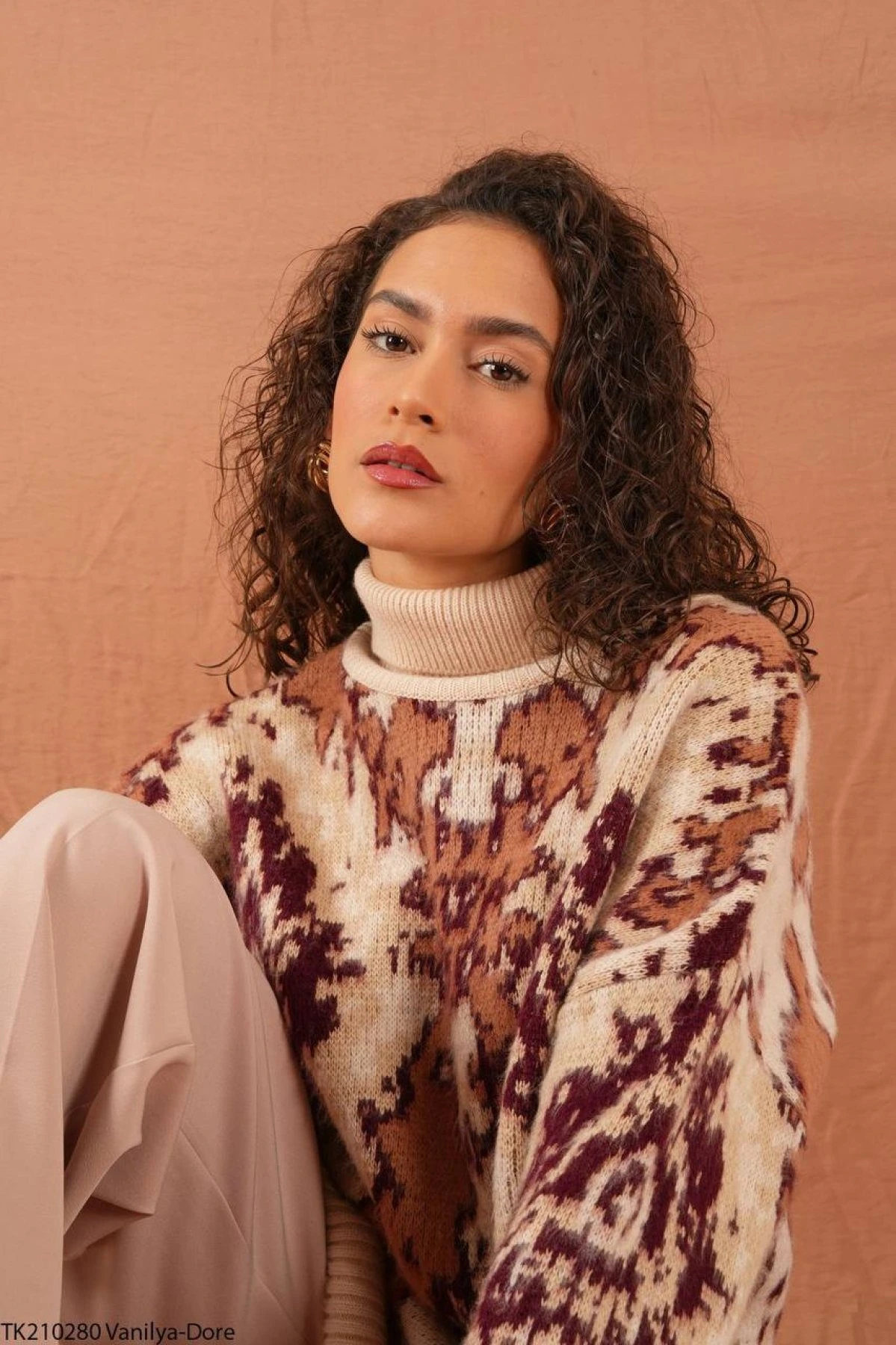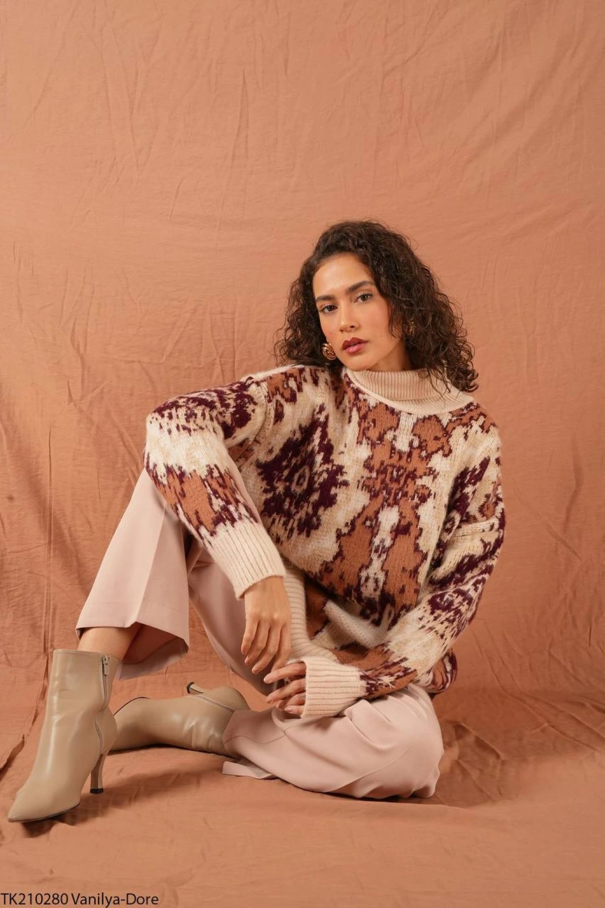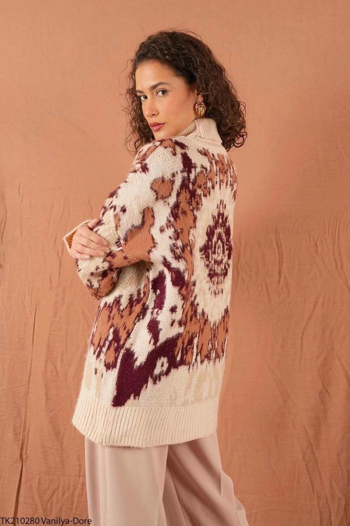 BALIKÇI YAKA DESENLİ YUMOŞ SALAŞ KAZAK – VANİLYA