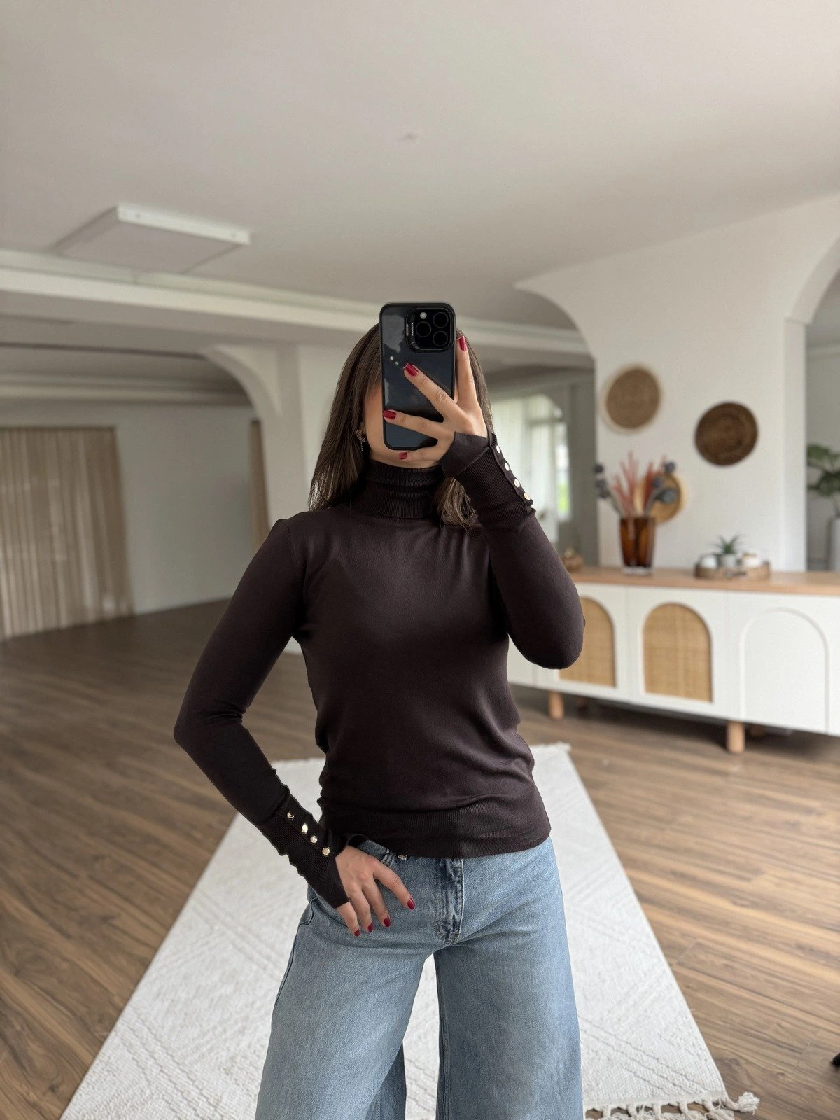 BALIKÇI YAKA KOL DROP VİSKON KAZAK – KOYU KAHVE
