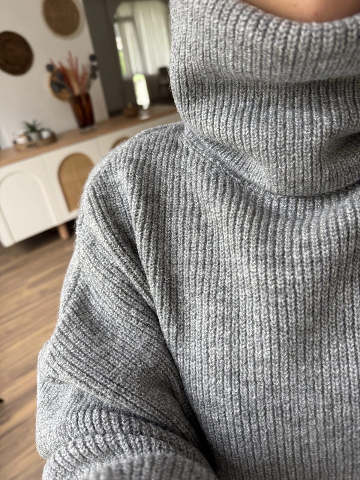 BALIKÇI YAKA OVERSİZE KAZAK – KOYU GRİ