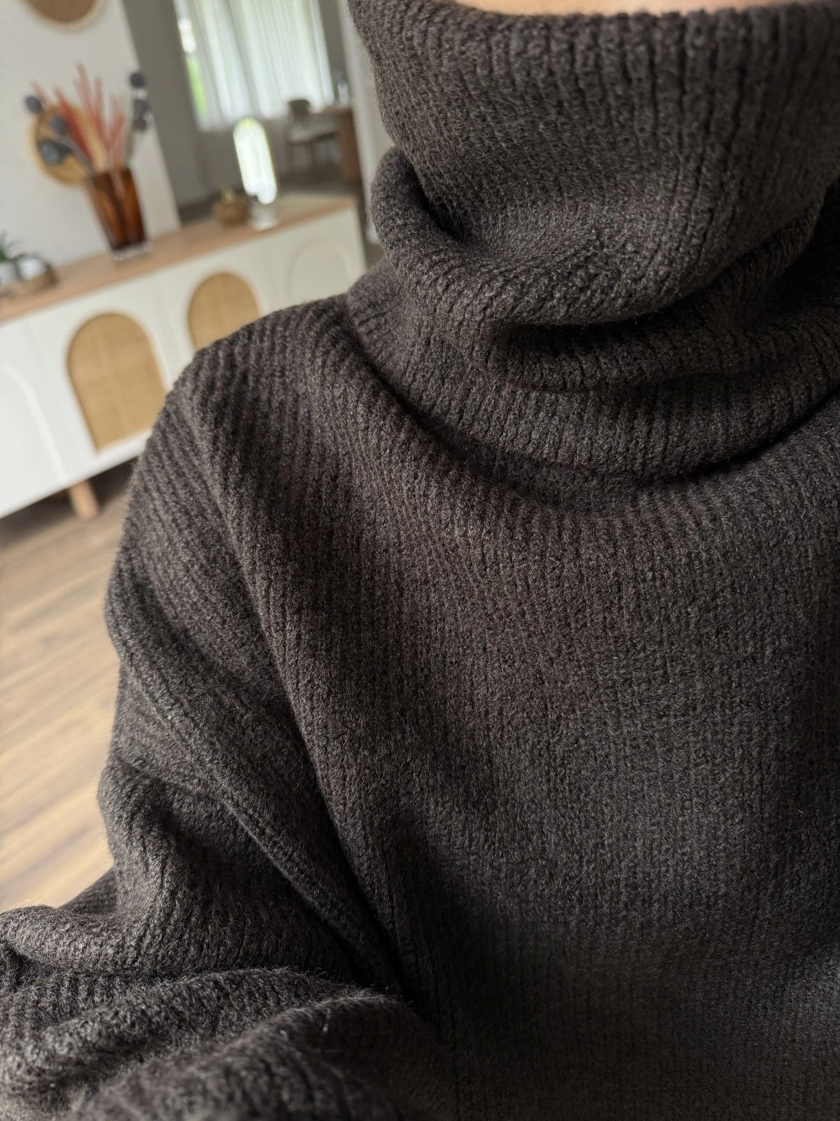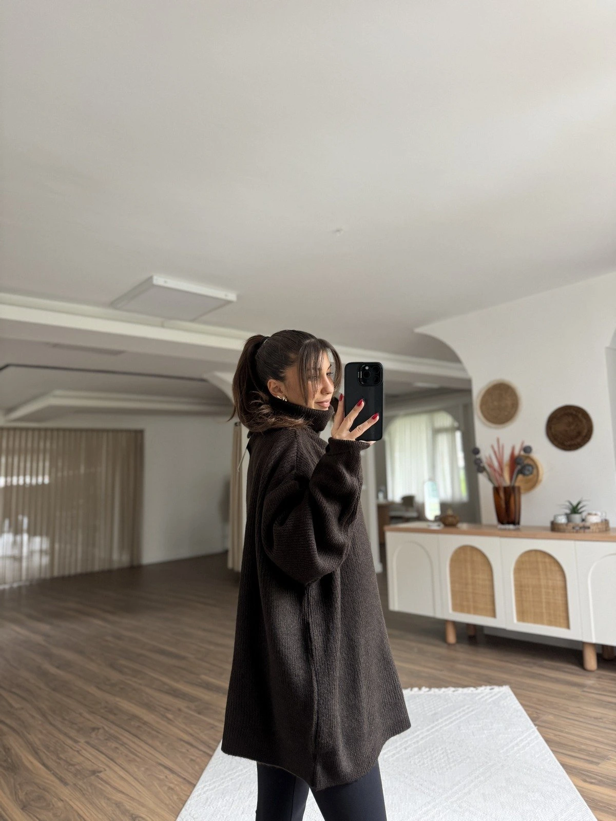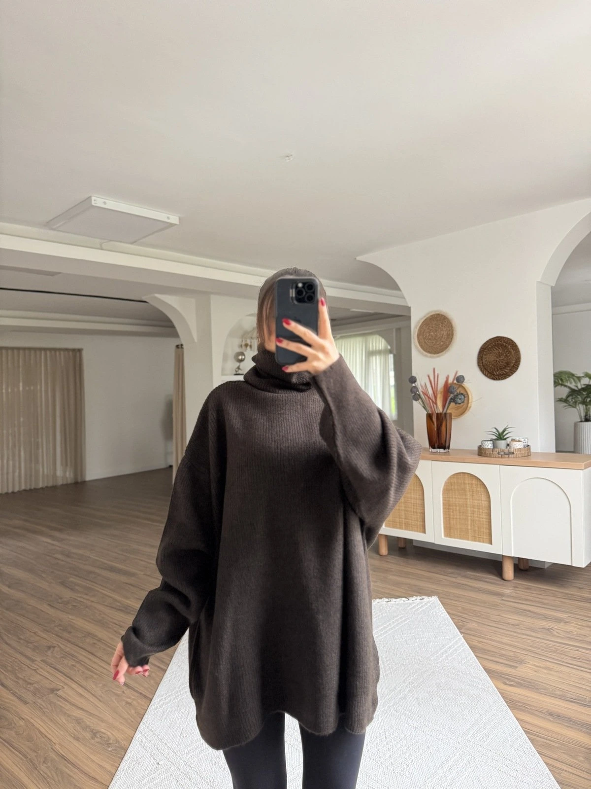 BALIKÇI YAKA OVERSİZE KAZAK – KOYU KAHVE