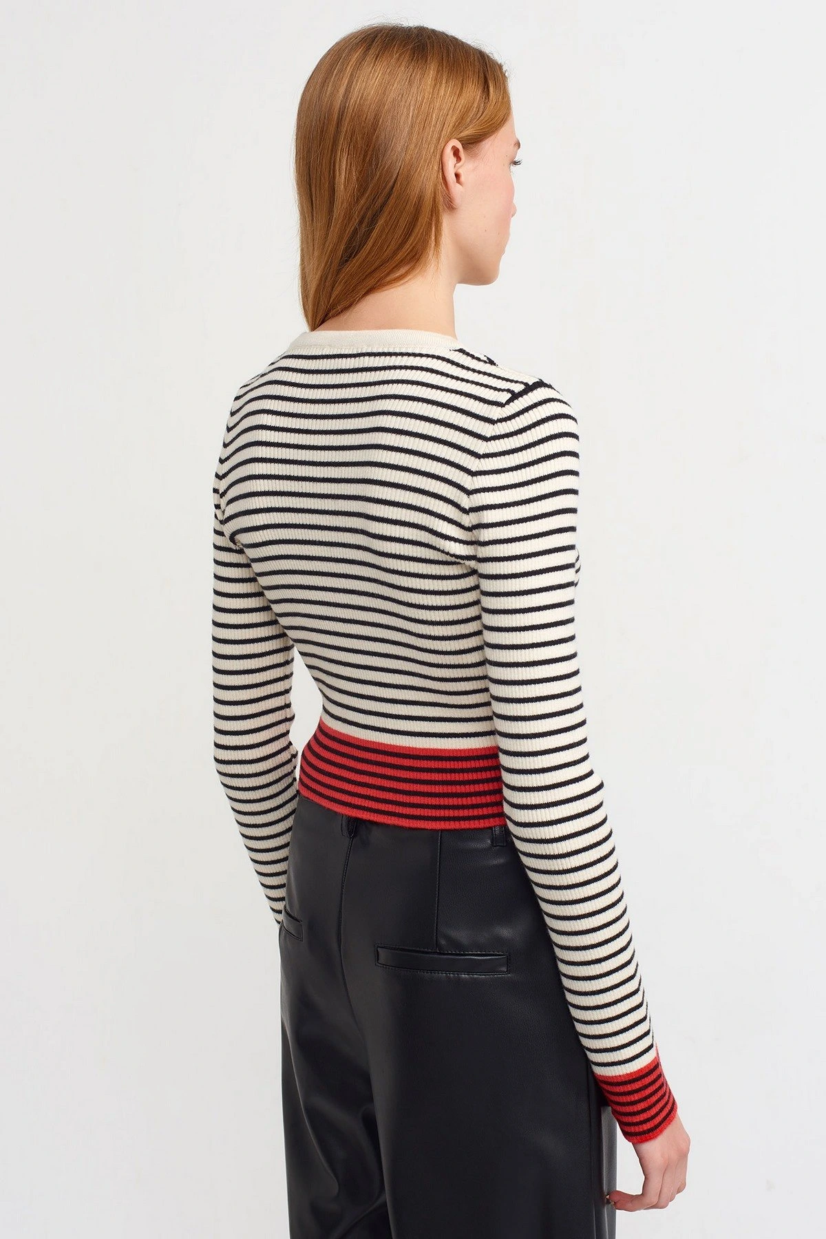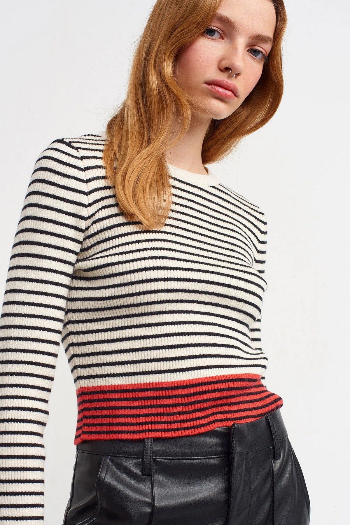 BİSİKLET YAKA ÇİZGİLİ KAZAK – NATUREL