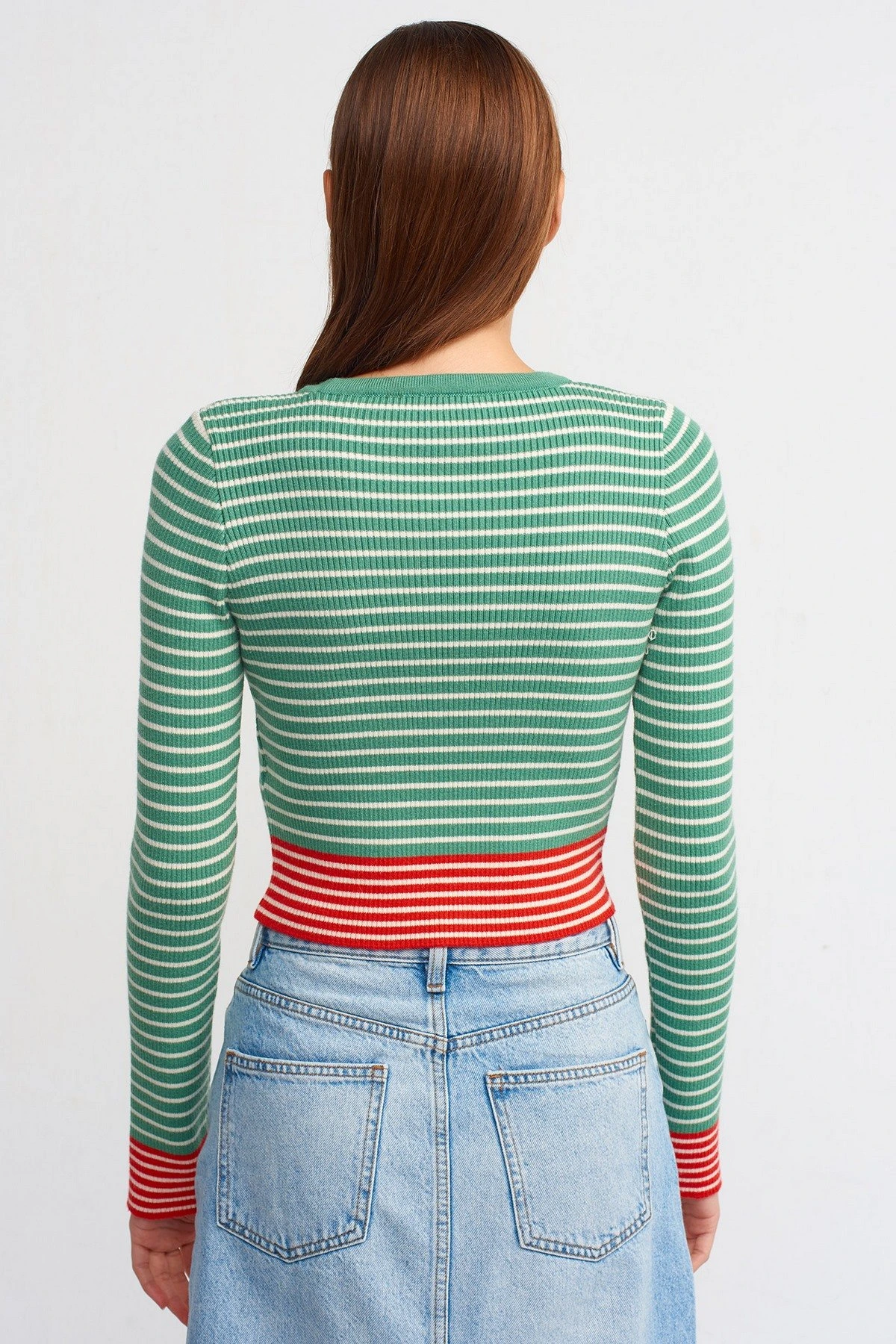 BİSİKLET YAKA ÇİZGİLİ KAZAK – NEFTİ YEŞİL