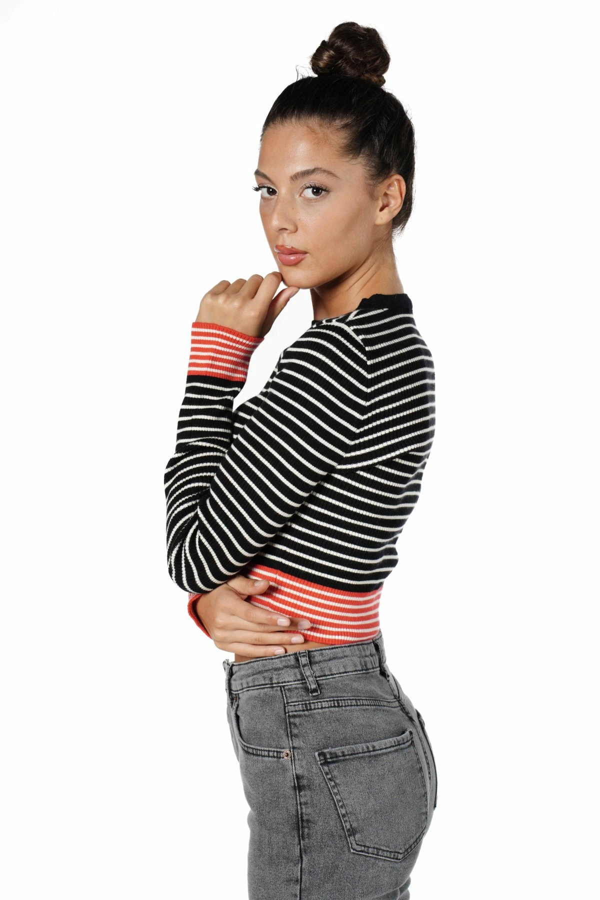 BİSİKLET YAKA ÇİZGİLİ KISA KAZAK – SİYAH