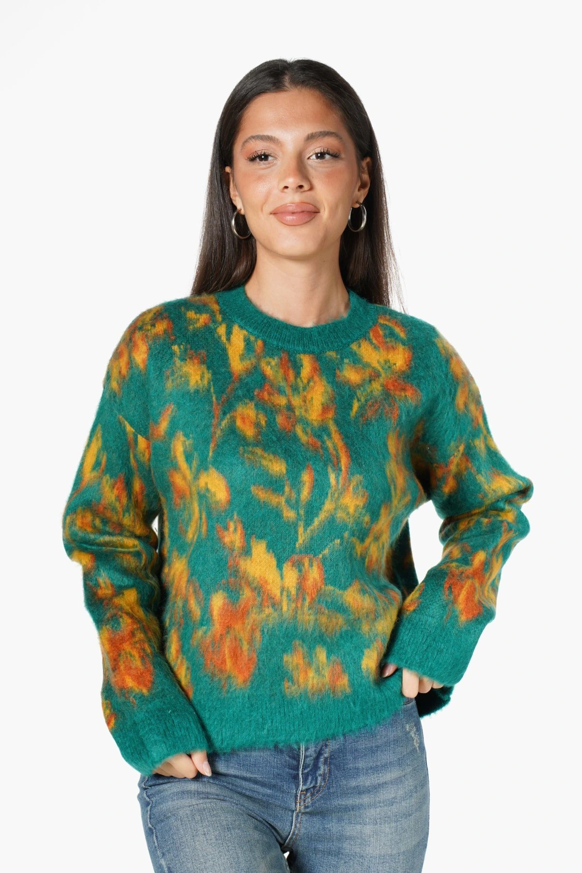 BİSİKLET YAKA DESENLİ KAZAK – ZÜMRÜT YEŞİL