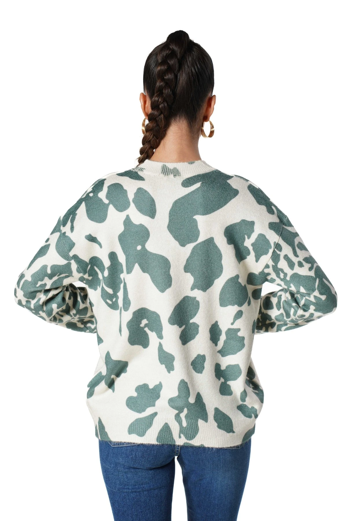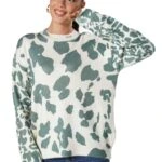 BİSİKLET YAKA DESENLİ VİSKON KAZAK – EKRU-YEŞİL