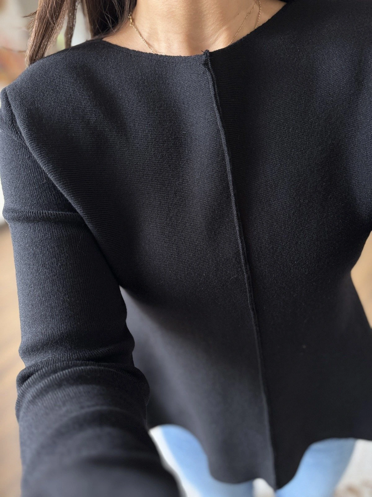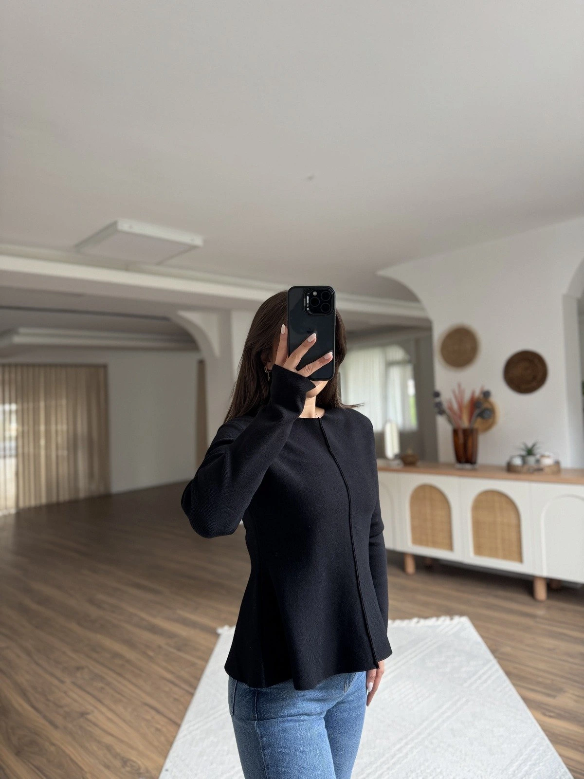 BİSİKLET YAKA ETEĞİ VOLAN VİSKON KAZAK – SİYAH