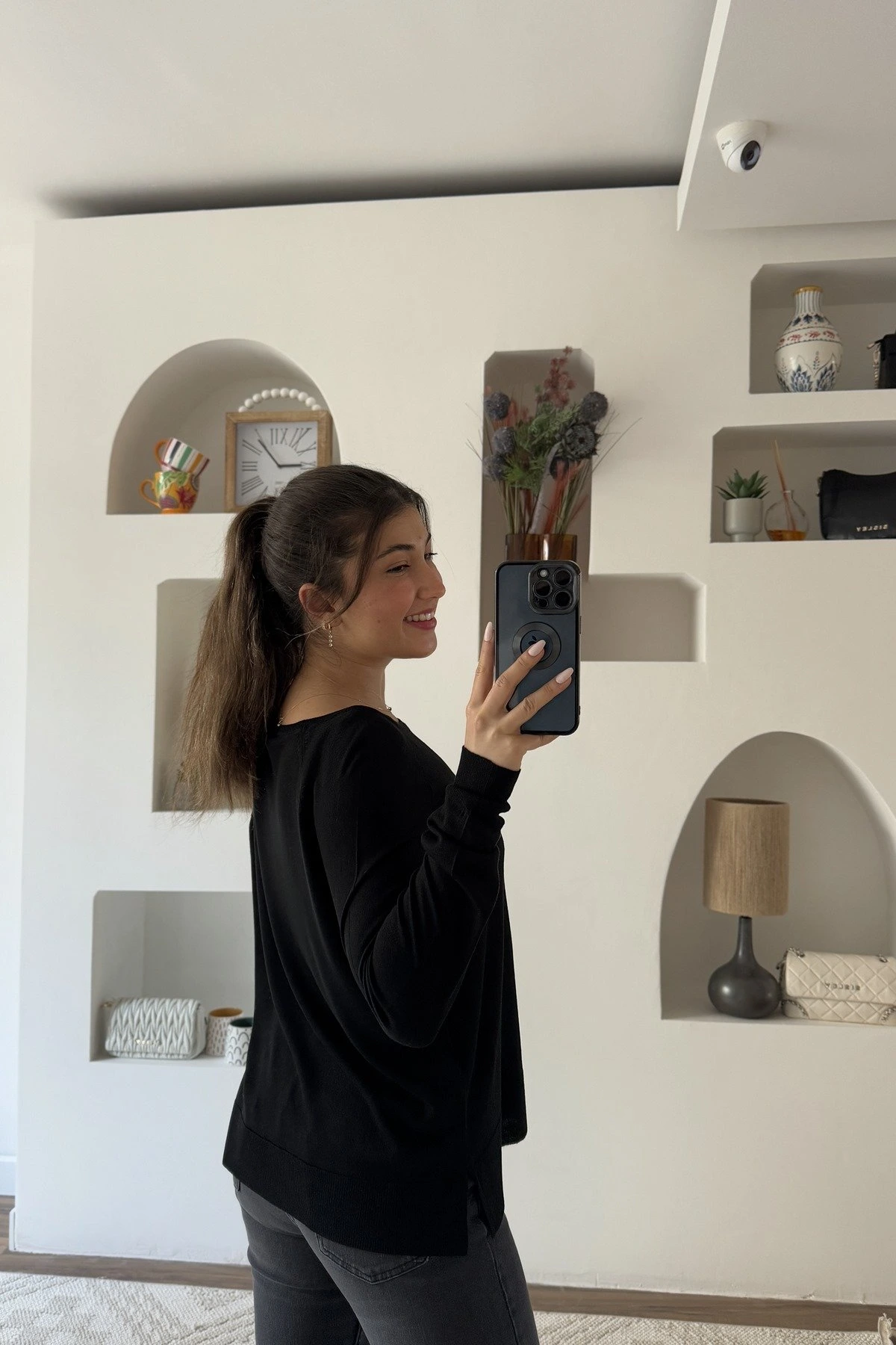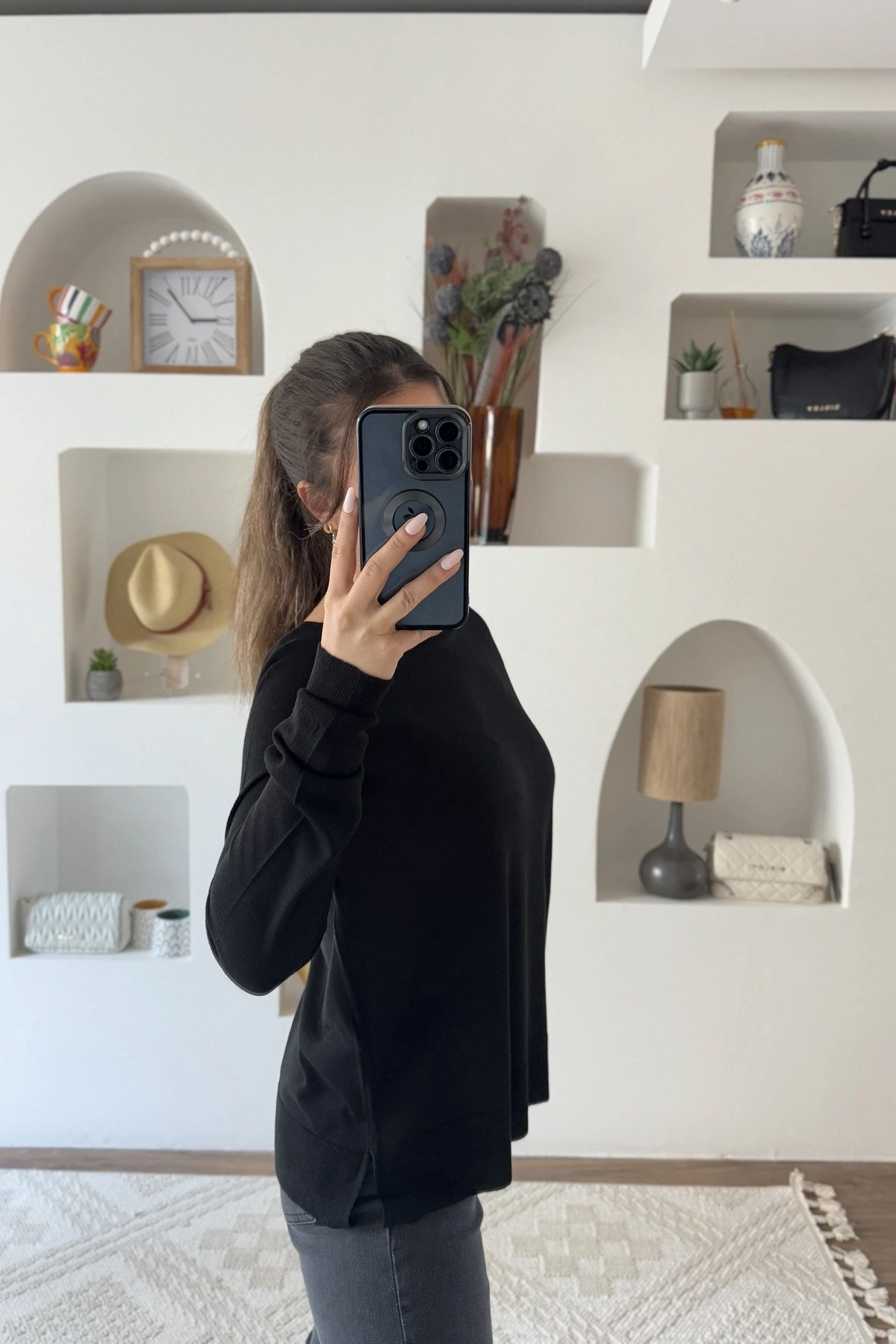 BİSİKLET YAKA ETEĞİ YIRTMAÇ BASİC İNCE VİSKON KAZAK – SİYAH