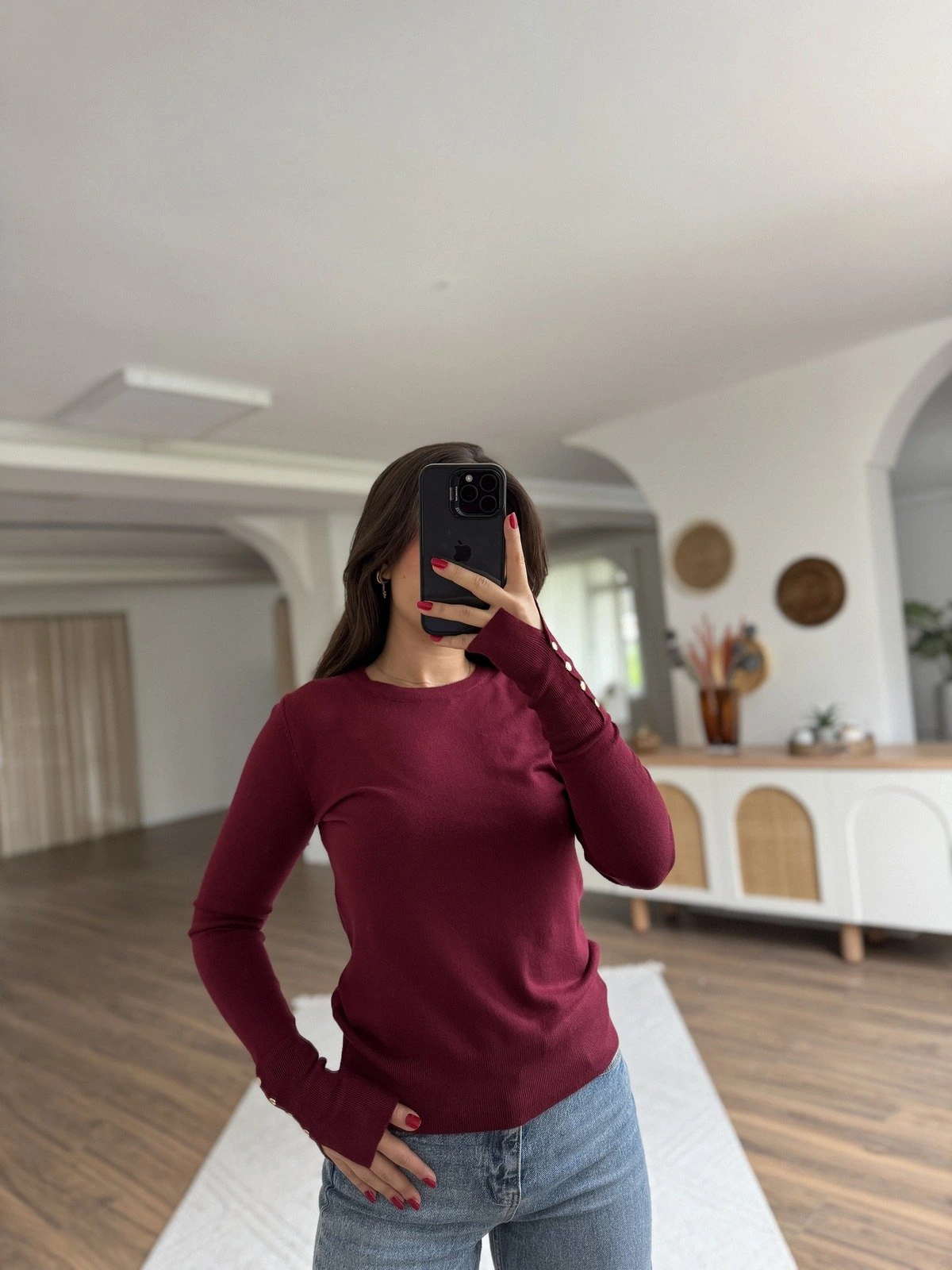 BİSİKLET YAKA KOL DROP VSİKON KAZAK – BORDO
