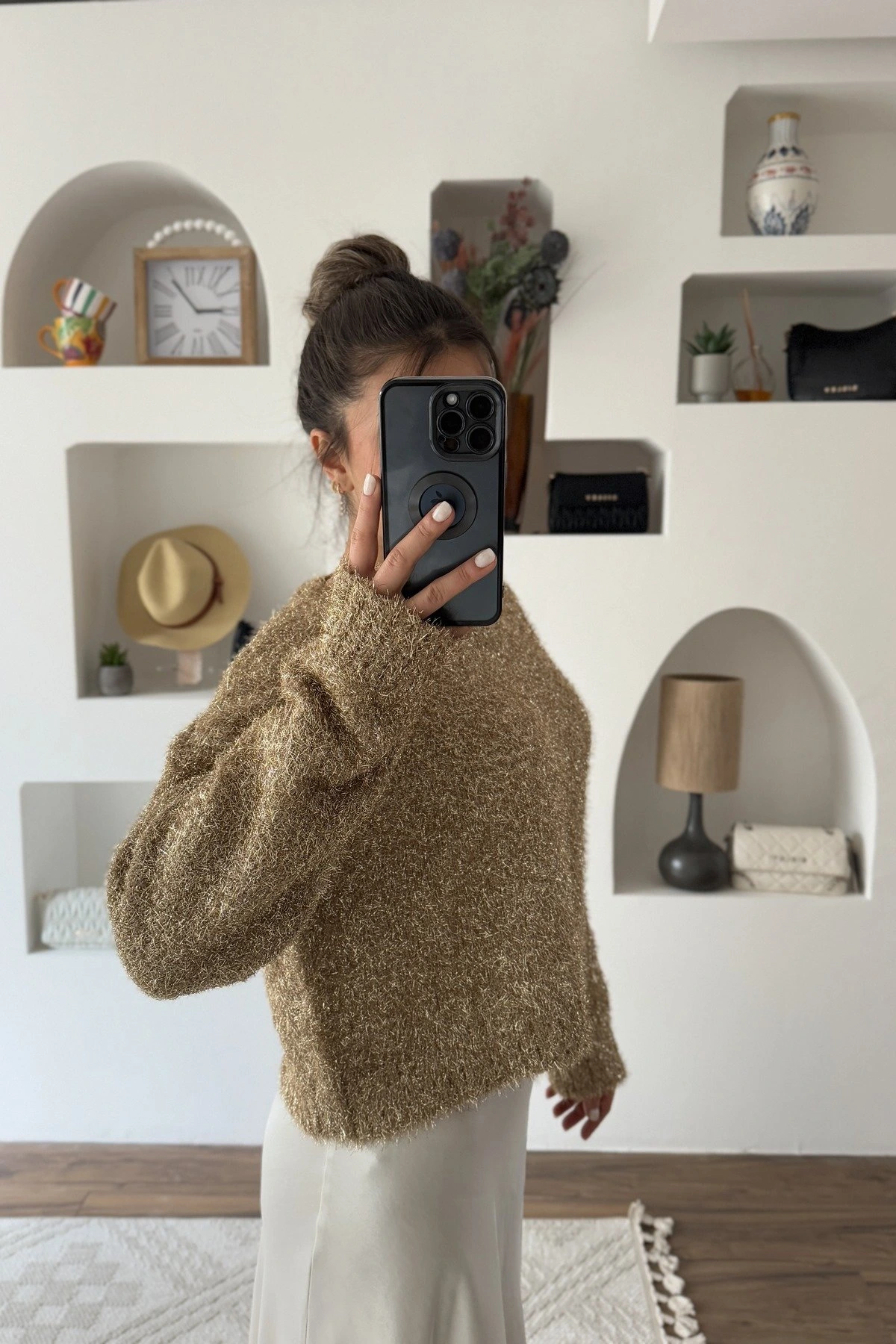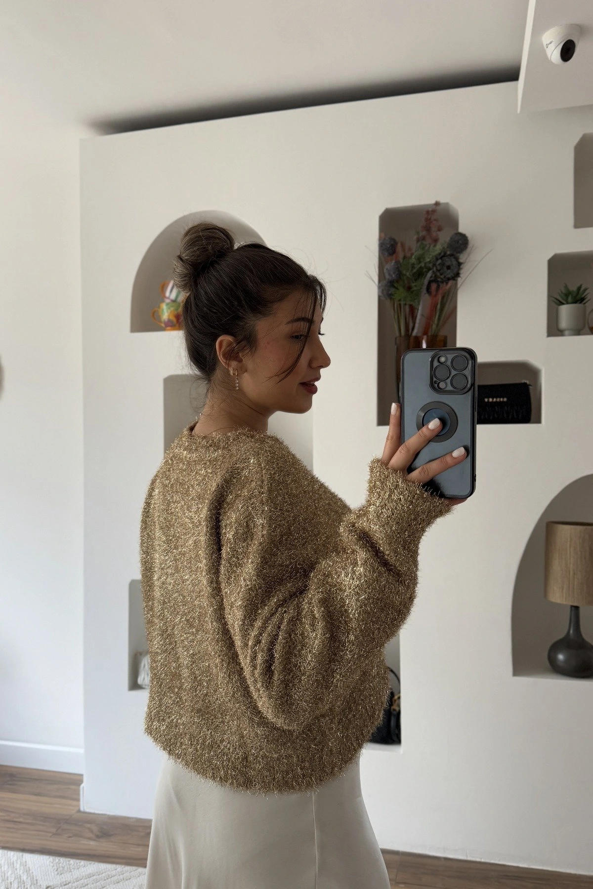 BİSİKLET YAKA PARLAK KISA KAZAK – ALTIN