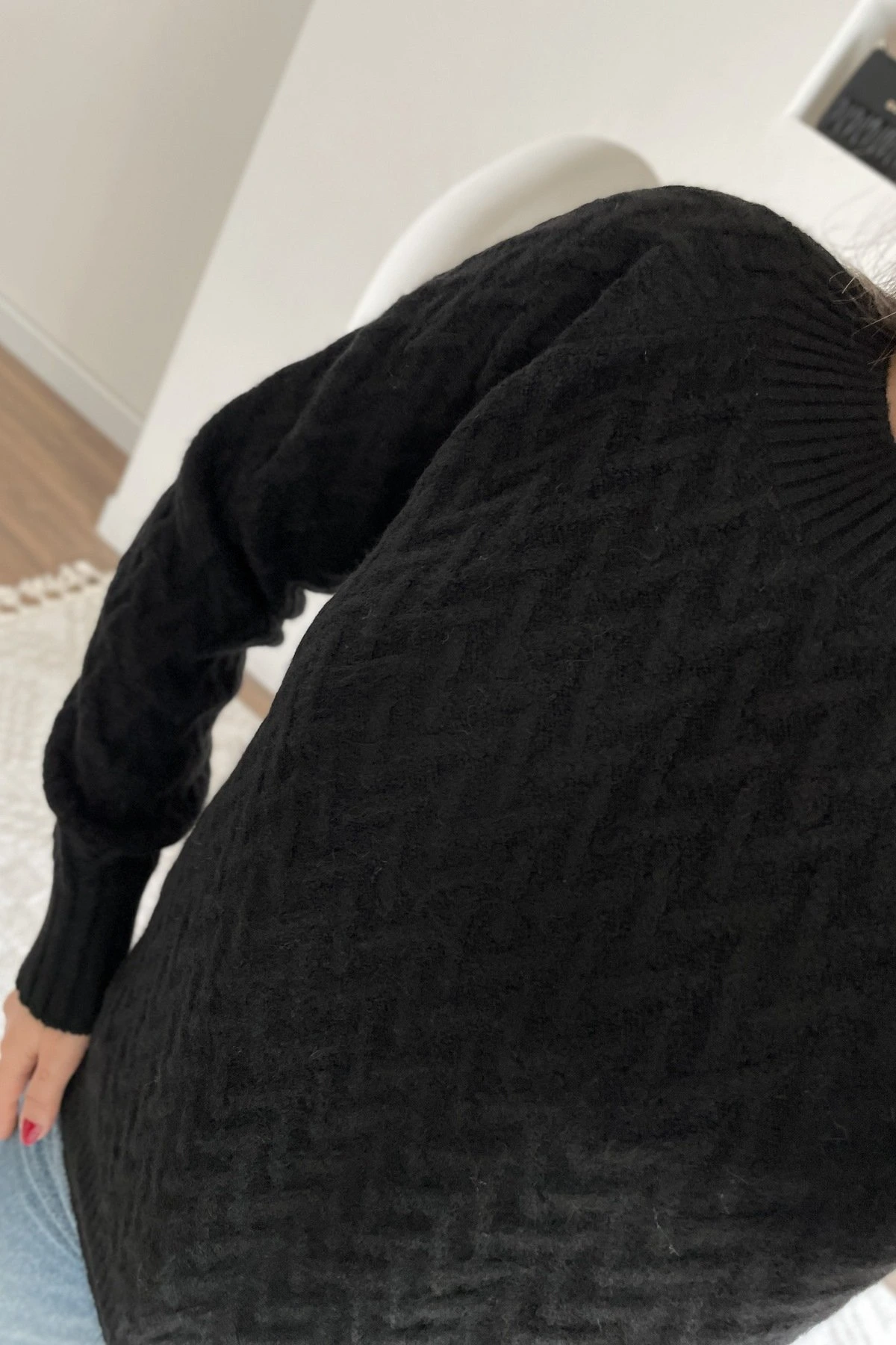 BİSİKLET YAKA REGLAN KOL V DOKUMA VİSKON KAZAK – SİYAH